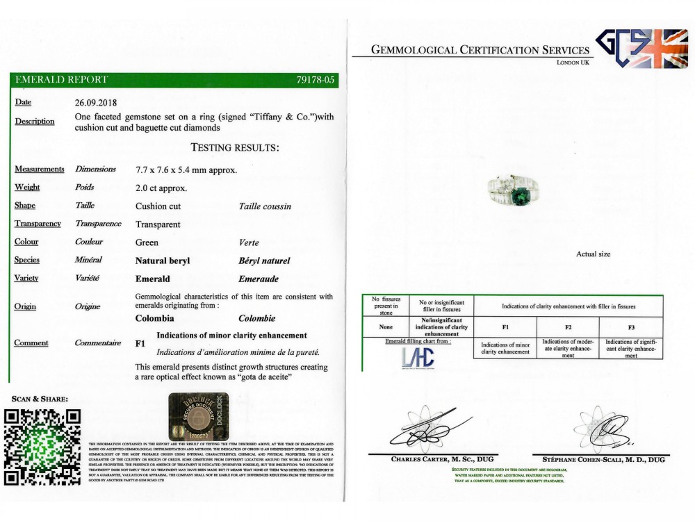 - Accompanied by Swiss Gemmological Institute report no. 123150, dated 8 June 2022, stating that the 2.00 carat gemstone is natural, of Colombian origin, with minor amount of oil in fissures