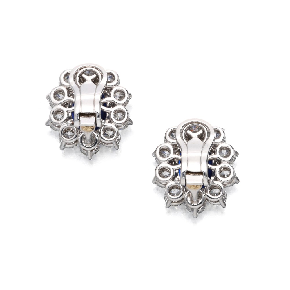 Featuring 2 oval-shaped sapphires, surrounded by 20 round diamonds.