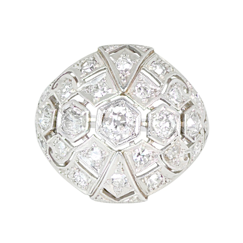 Set with 5 old mine diamonds, accented by Old European-cut diamonds.
