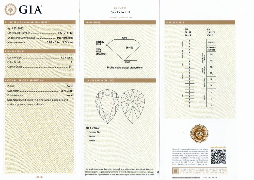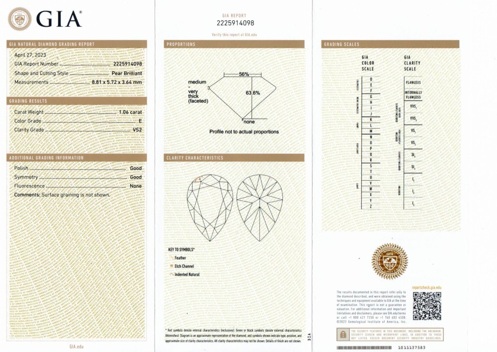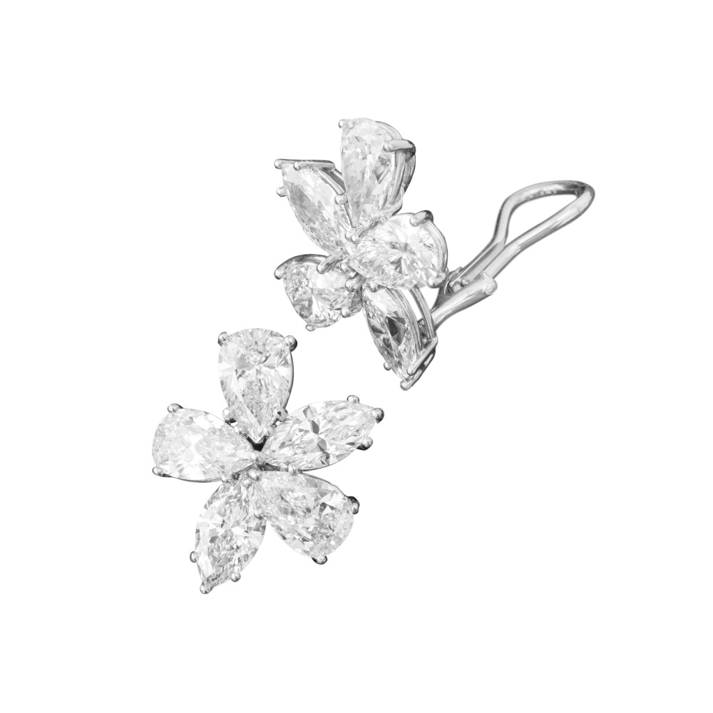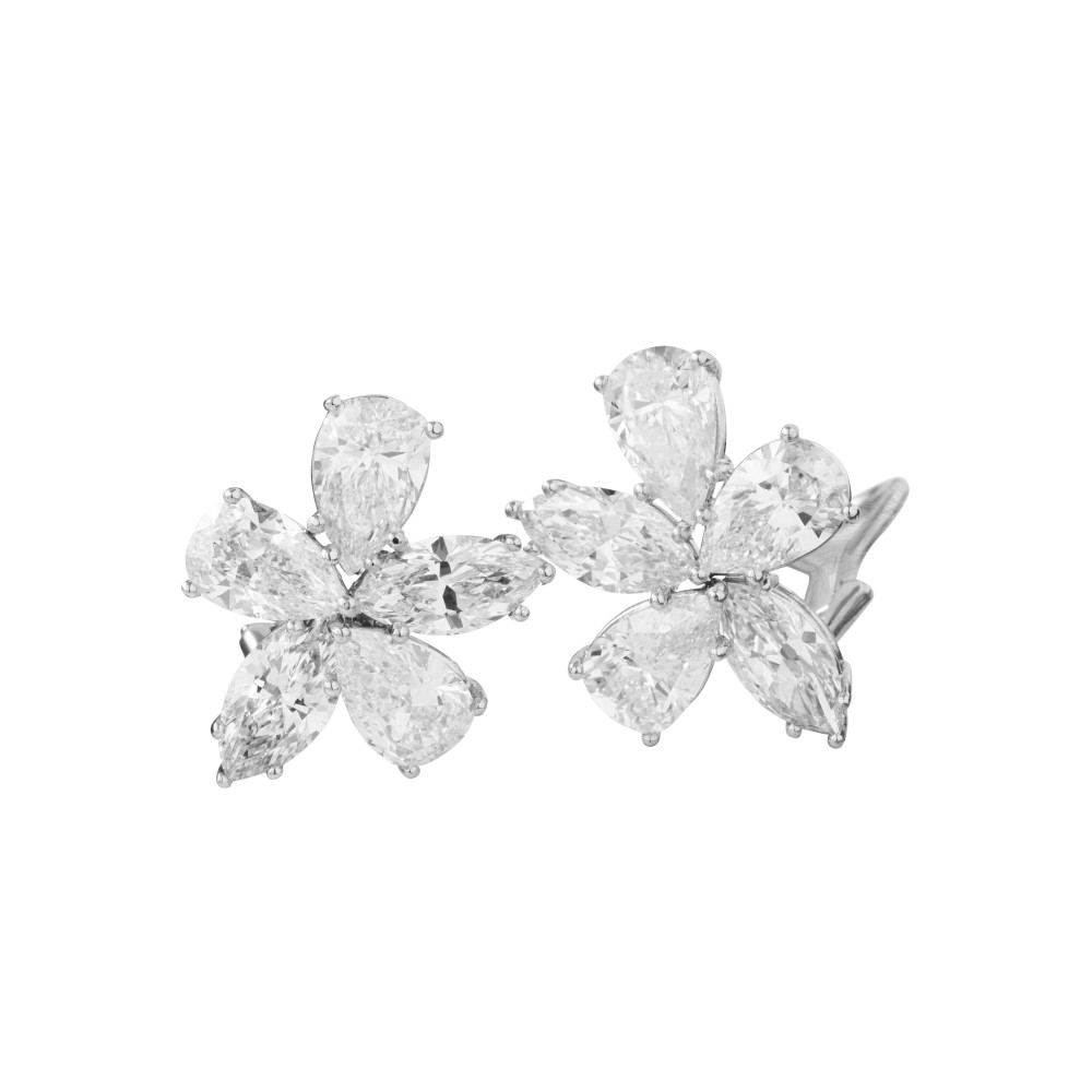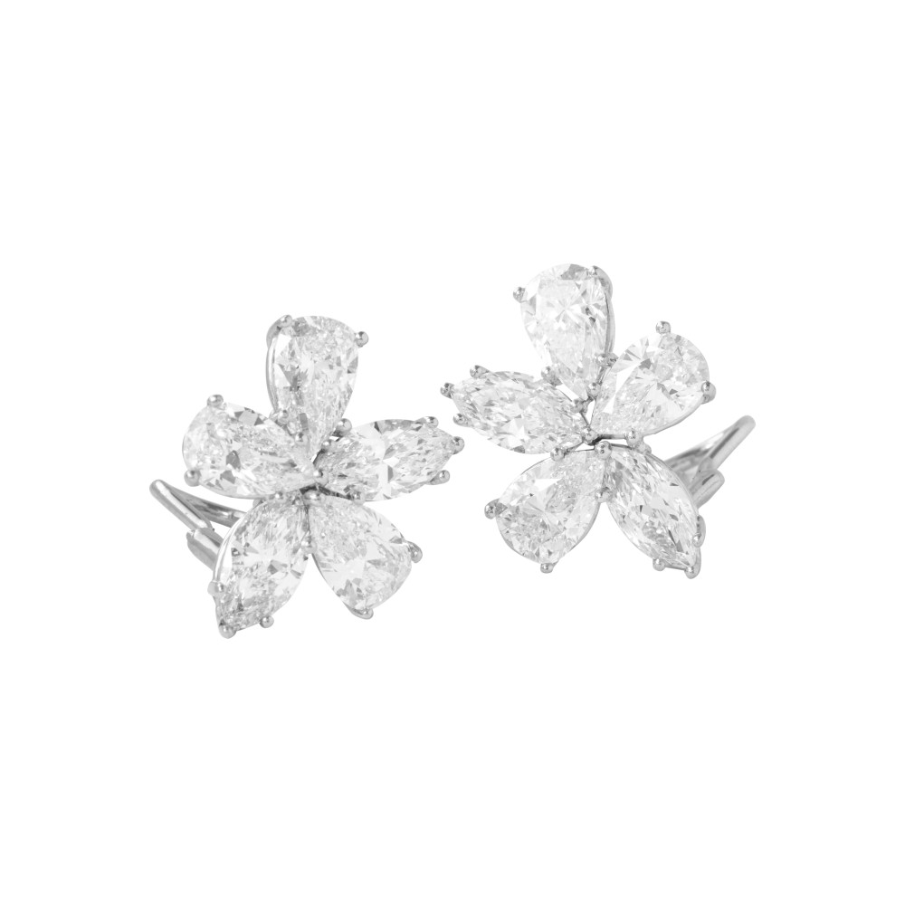 Each set with 3 pear-cut diamonds and 2 marquise-cut diamonds.