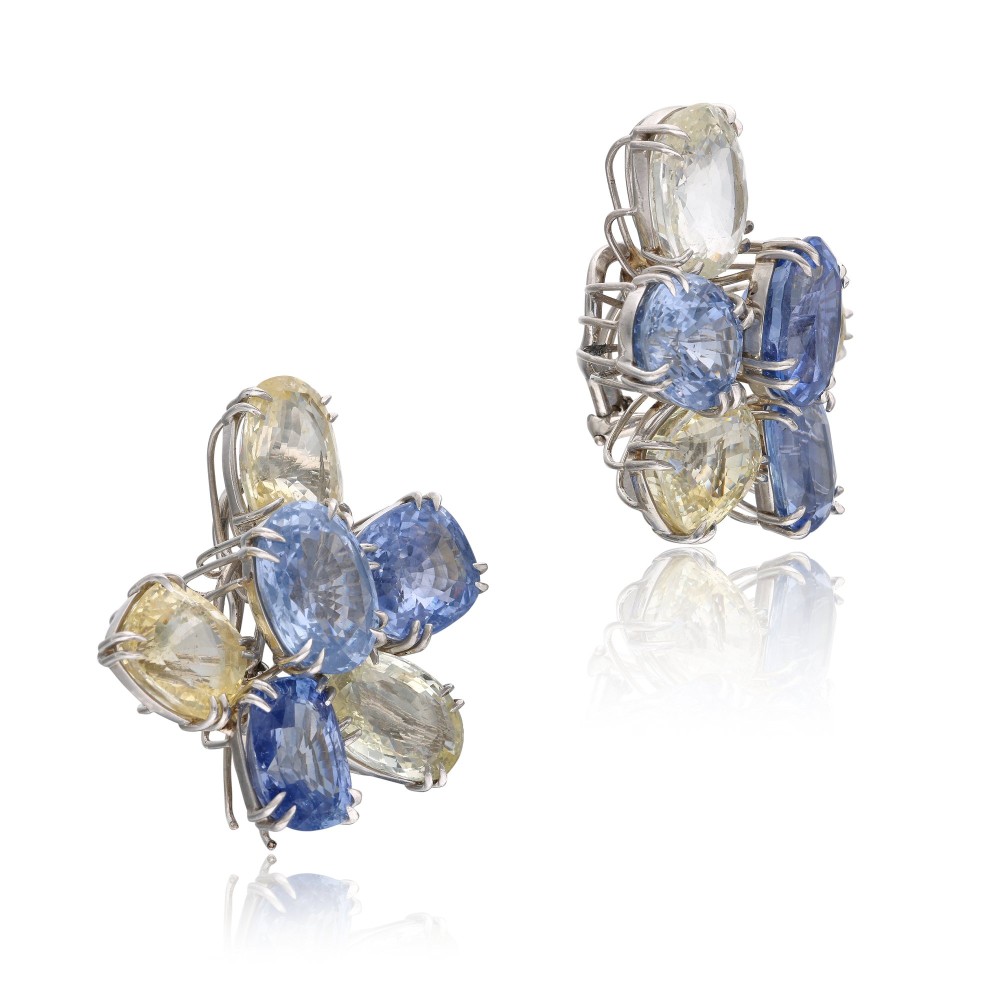 Composed of cushion and oval-shaped yellow and blue sapphires.