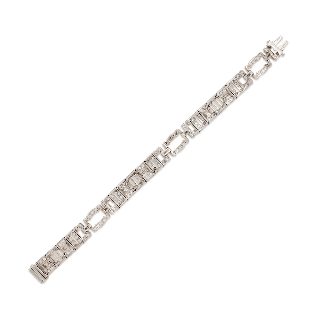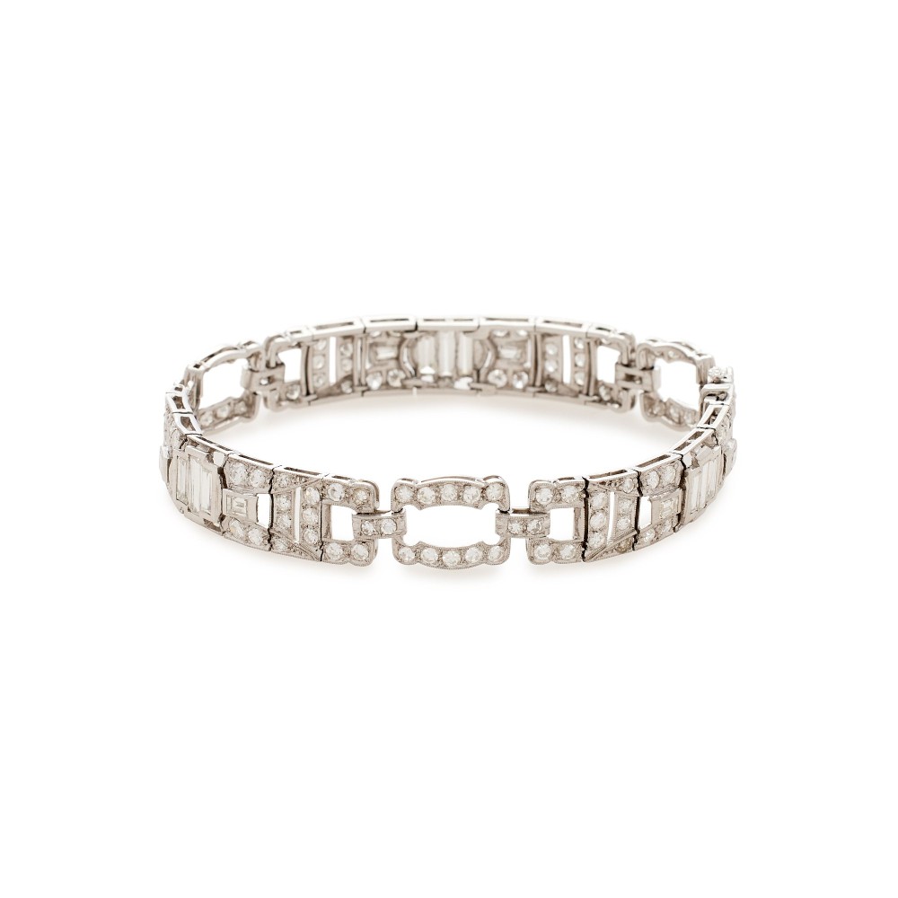 Composed of baguette and single-cut diamonds.