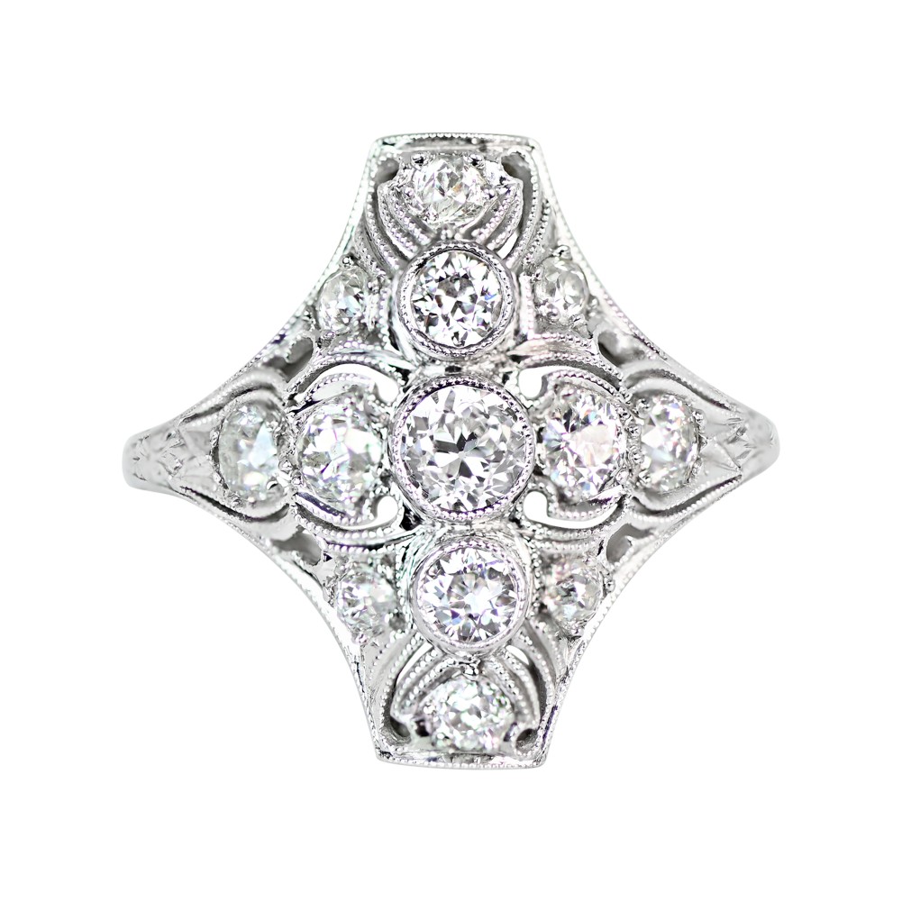 Set with 7 Old European-cut diamonds and 6 single-cut diamonds in Art Deco design.