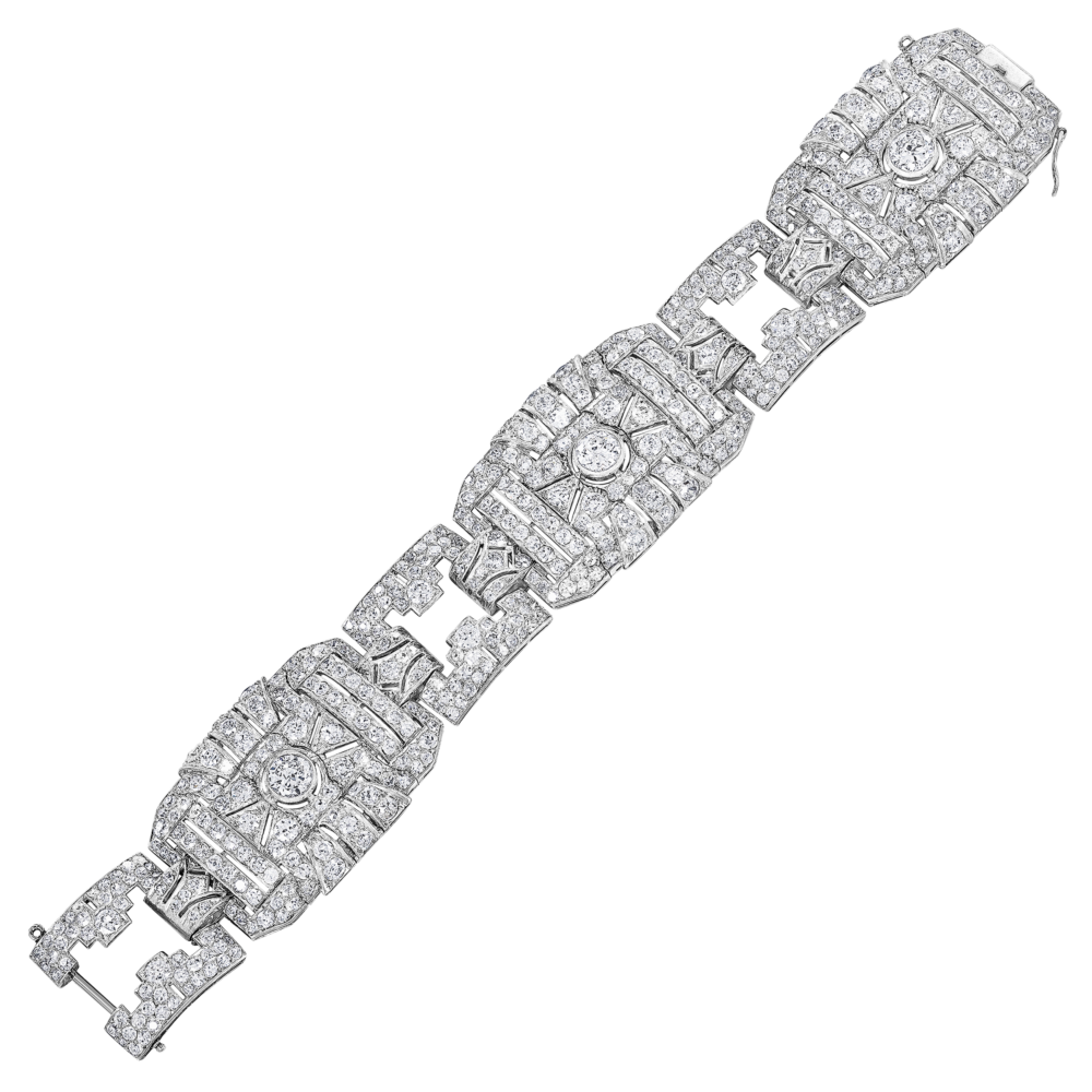 Strap-style bracelet featuring numerous diamonds.