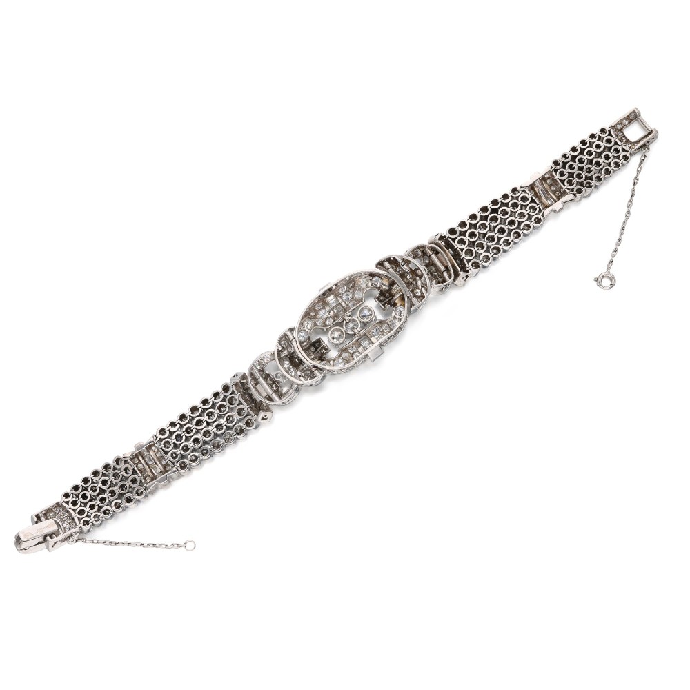 Composed of baguette, round brilliant and single-cut diamonds.