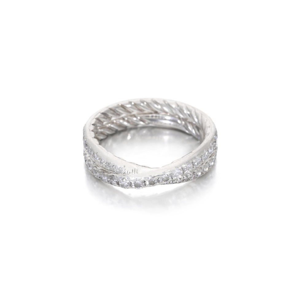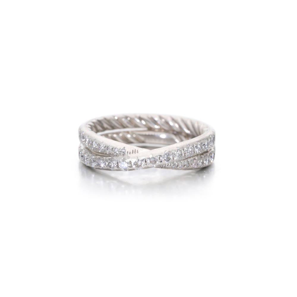 Composed of round brilliant-cut diamonds and of a crossover design.