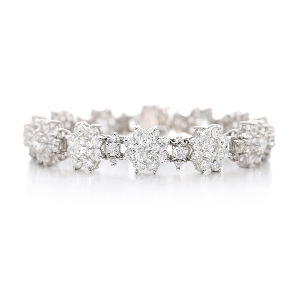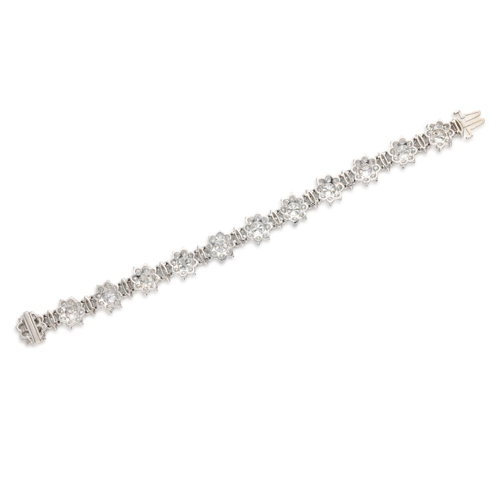 Composed of European-cut diamonds set in platinum and arranged as flower links.