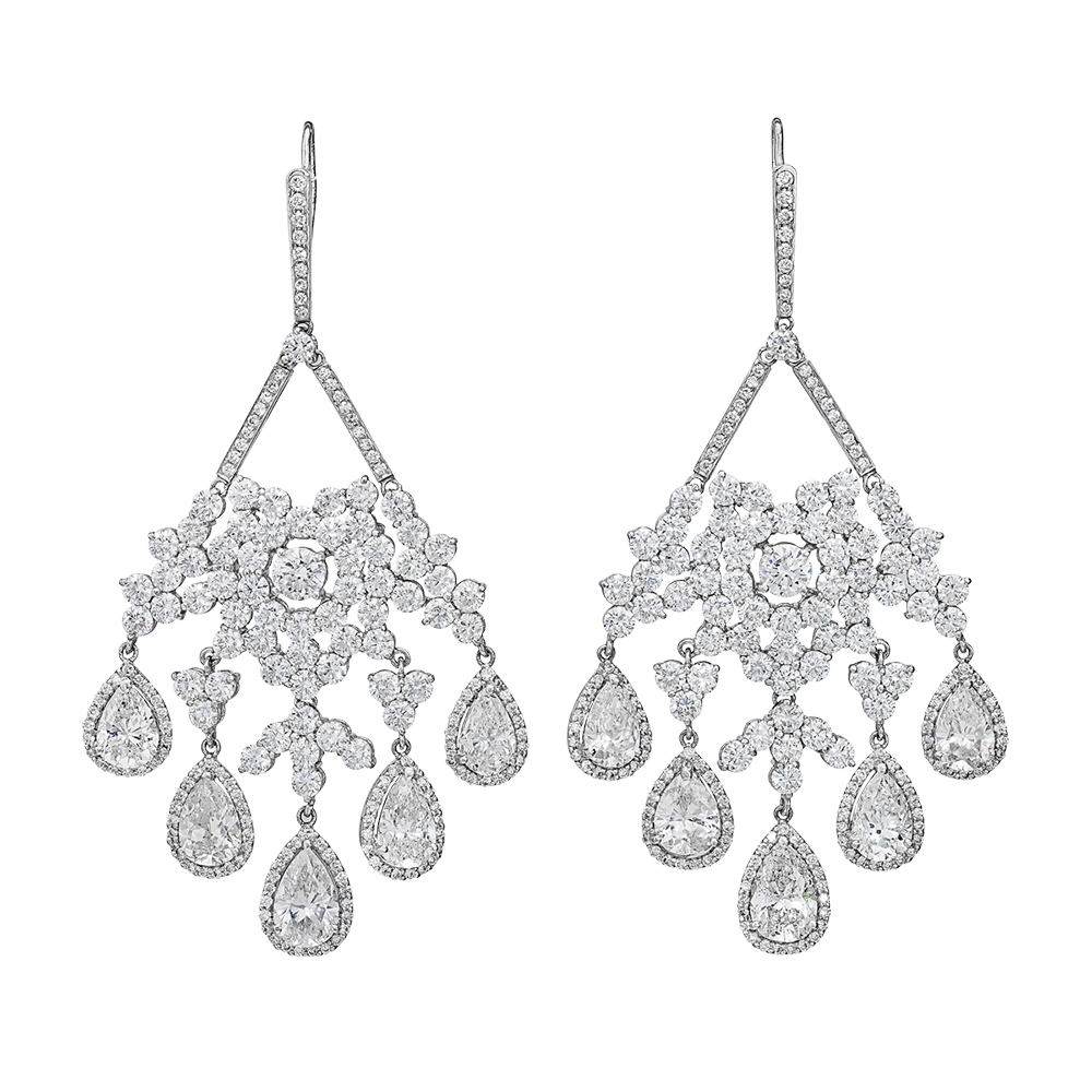 - Pear-shaped diamonds weighing approximately 9.80 carats