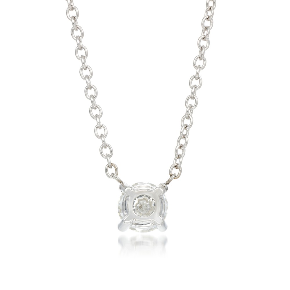 Claw-set round brilliant-cut diamond.