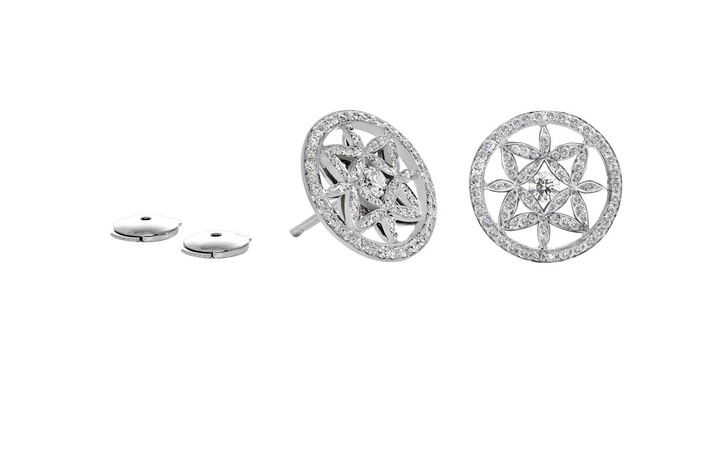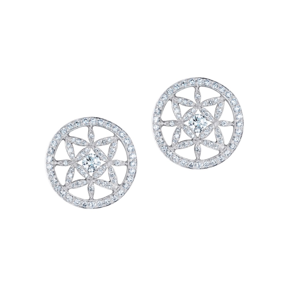 Composed of 148 brilliant-cut diamonds arranged in a floral pattern with surrounding halo.
