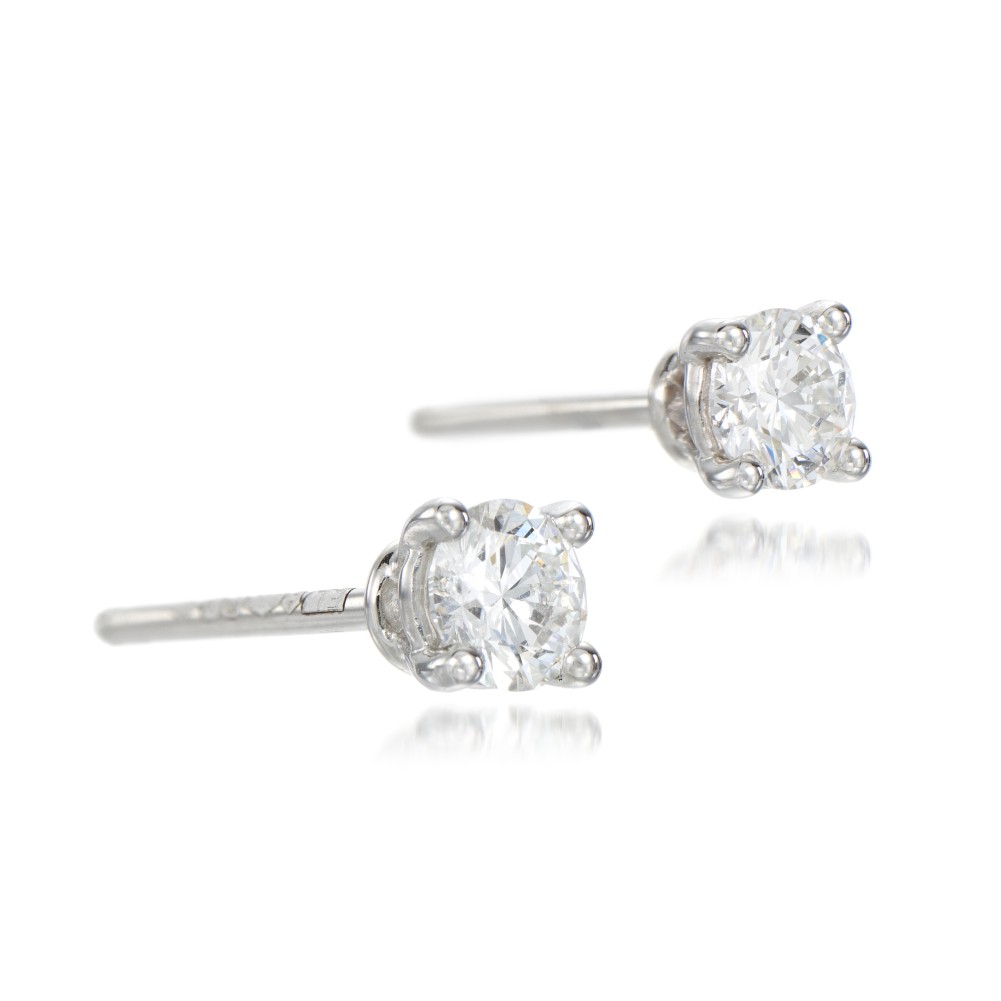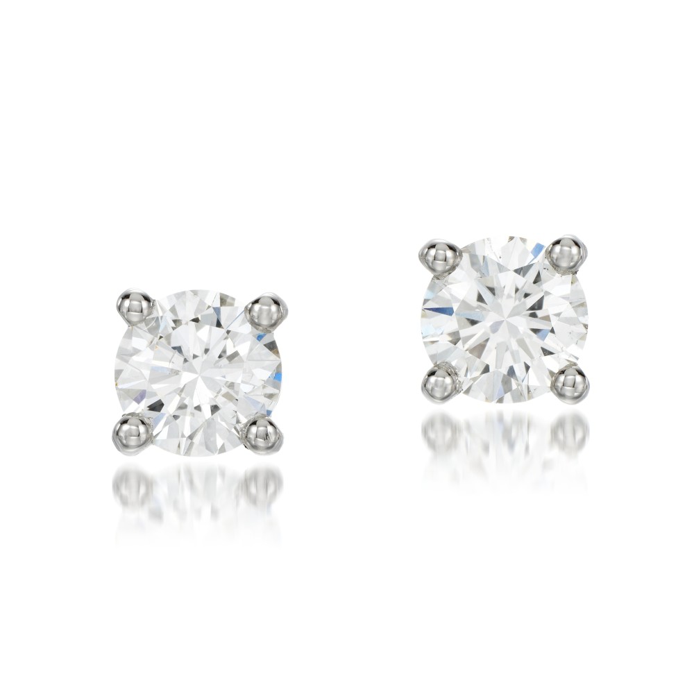 Featuring two round brilliant-cut diamonds.