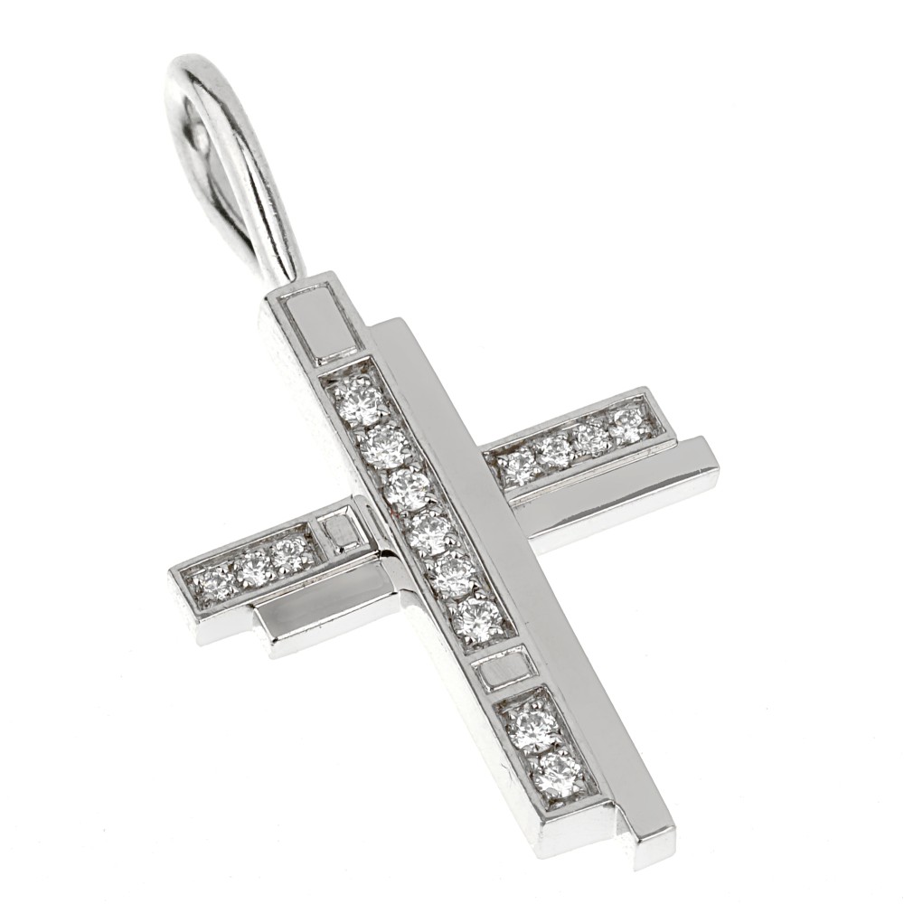 Featuring 2 overlapping crosses, accented by 15 round brilliant-cut diamonds.