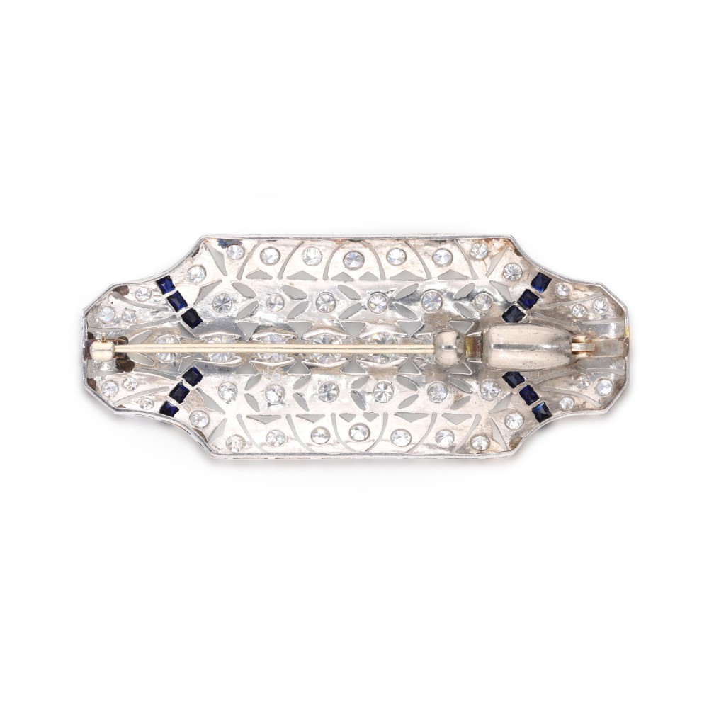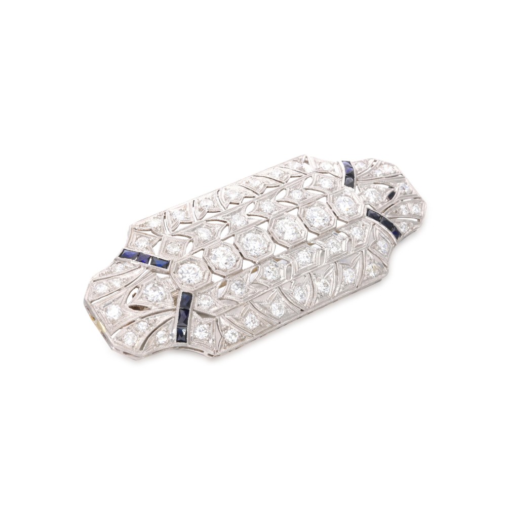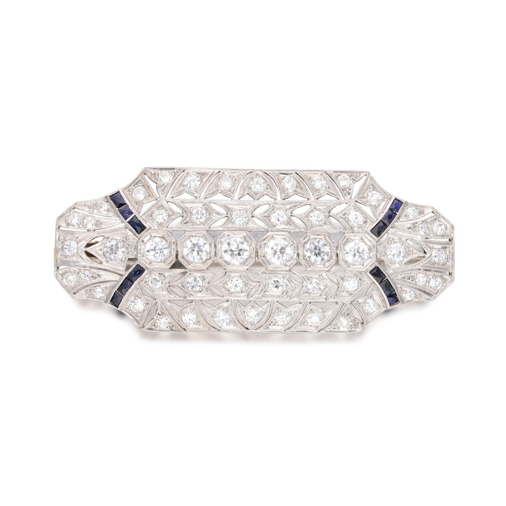 Of Art Deco style design, set with round diamonds and calibre cut sapphires.