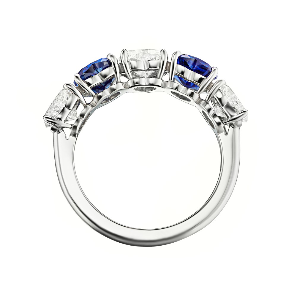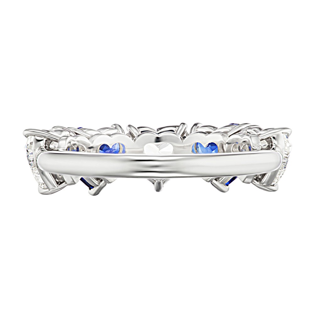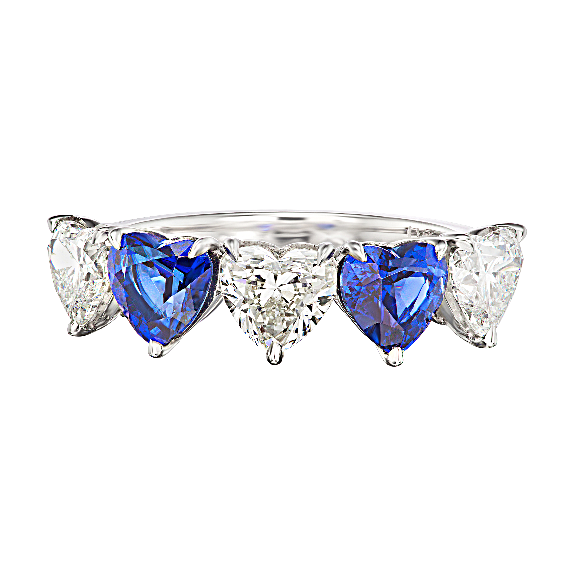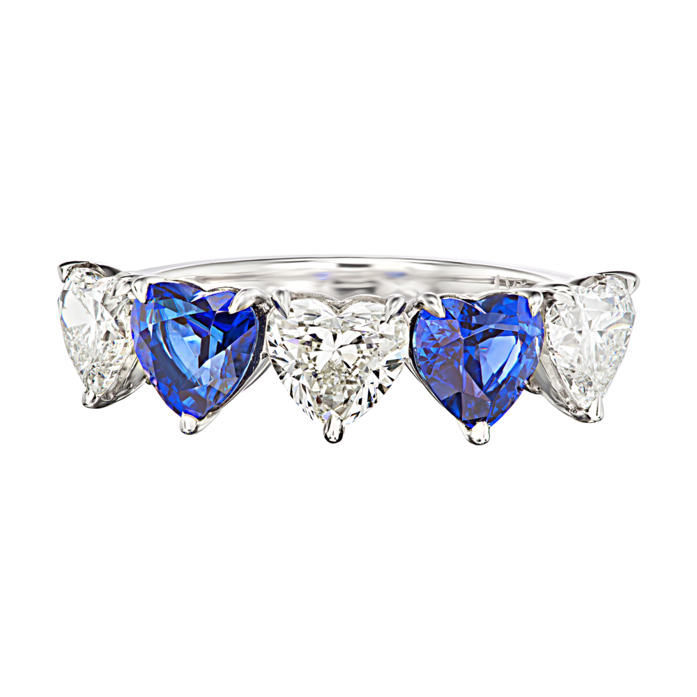 Featuring two heart shaped sapphires alternating with three heart shaped diamonds.