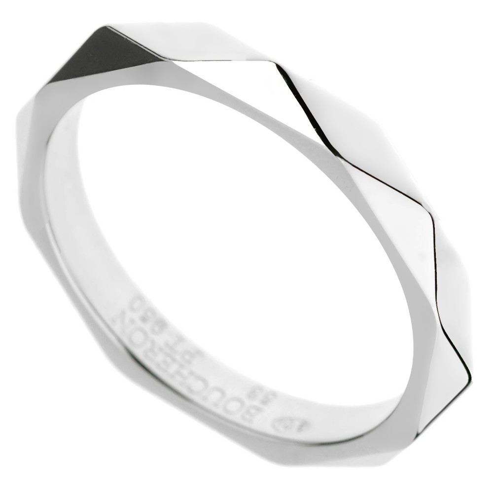 The platinum ring of faceted design.