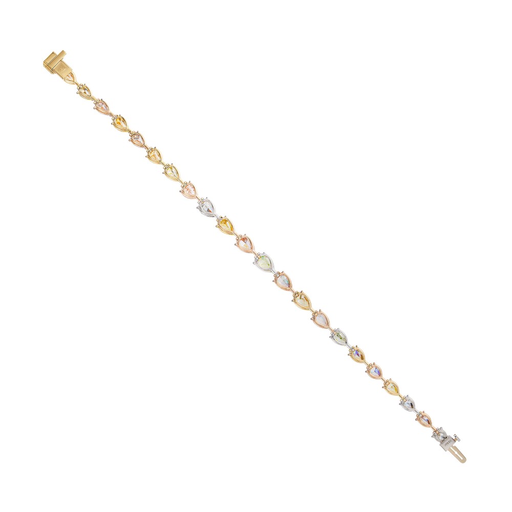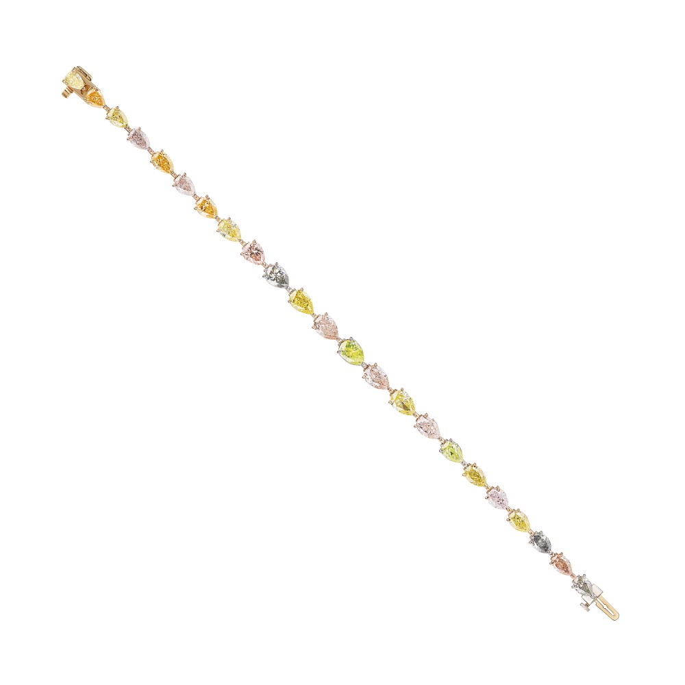Bracelet composed of 23 pear-shaped fancy colored diamonds.