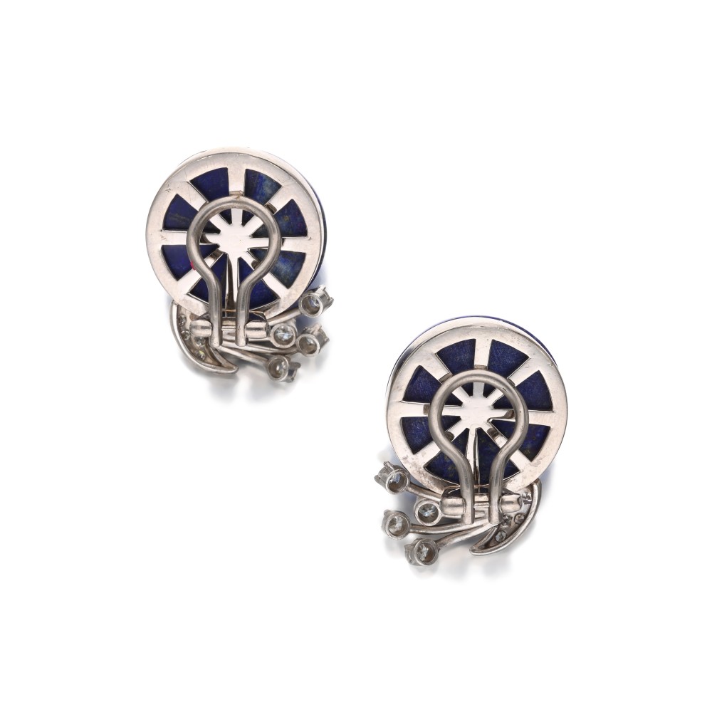Composed of round cabochon lapis lazulis, accented by diamonds.