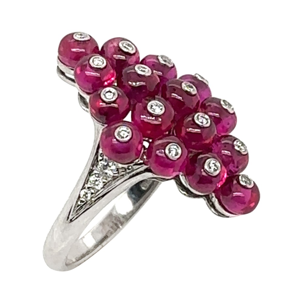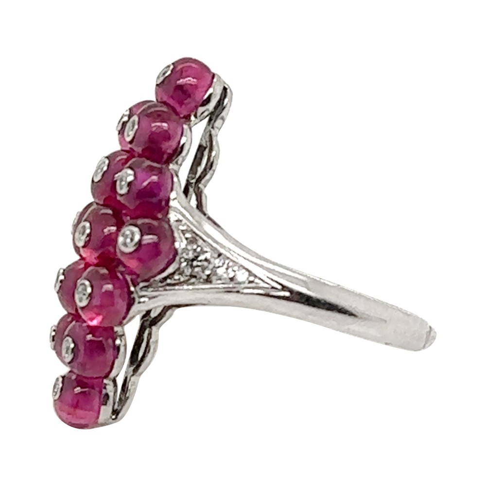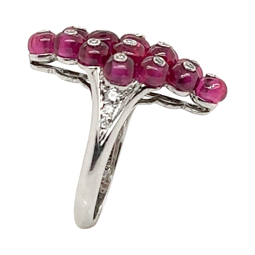 Featuring 15 ruby beads set in a kite shape, accented by bezel set round diamonds.