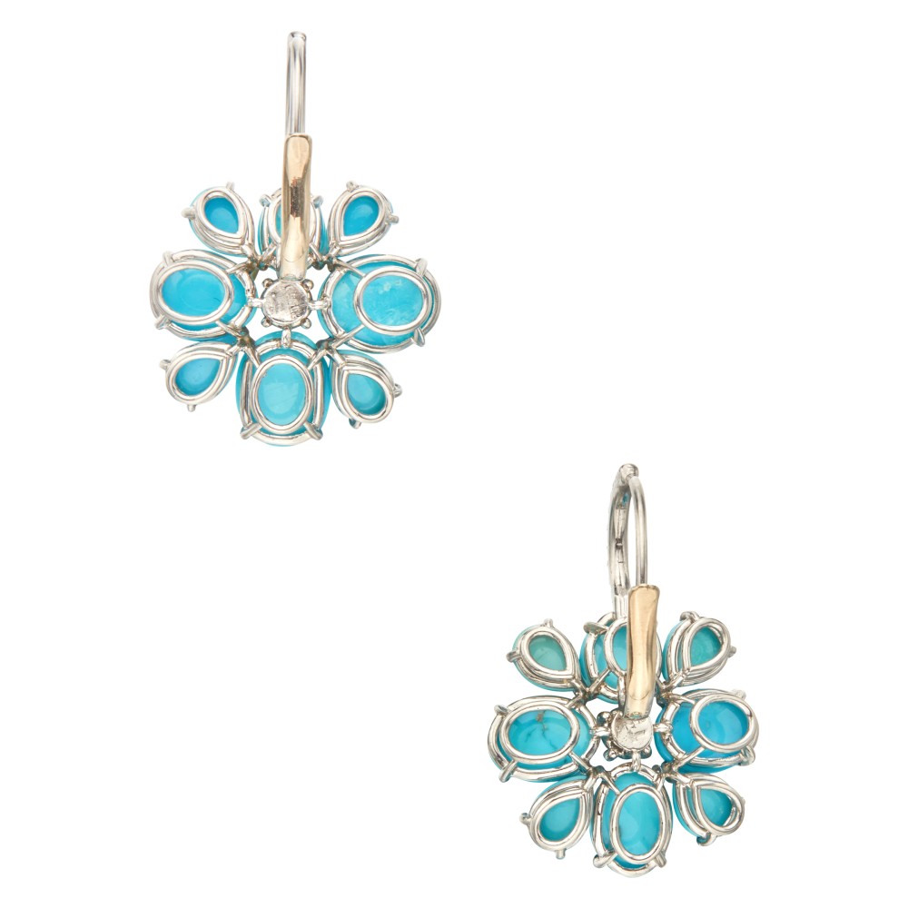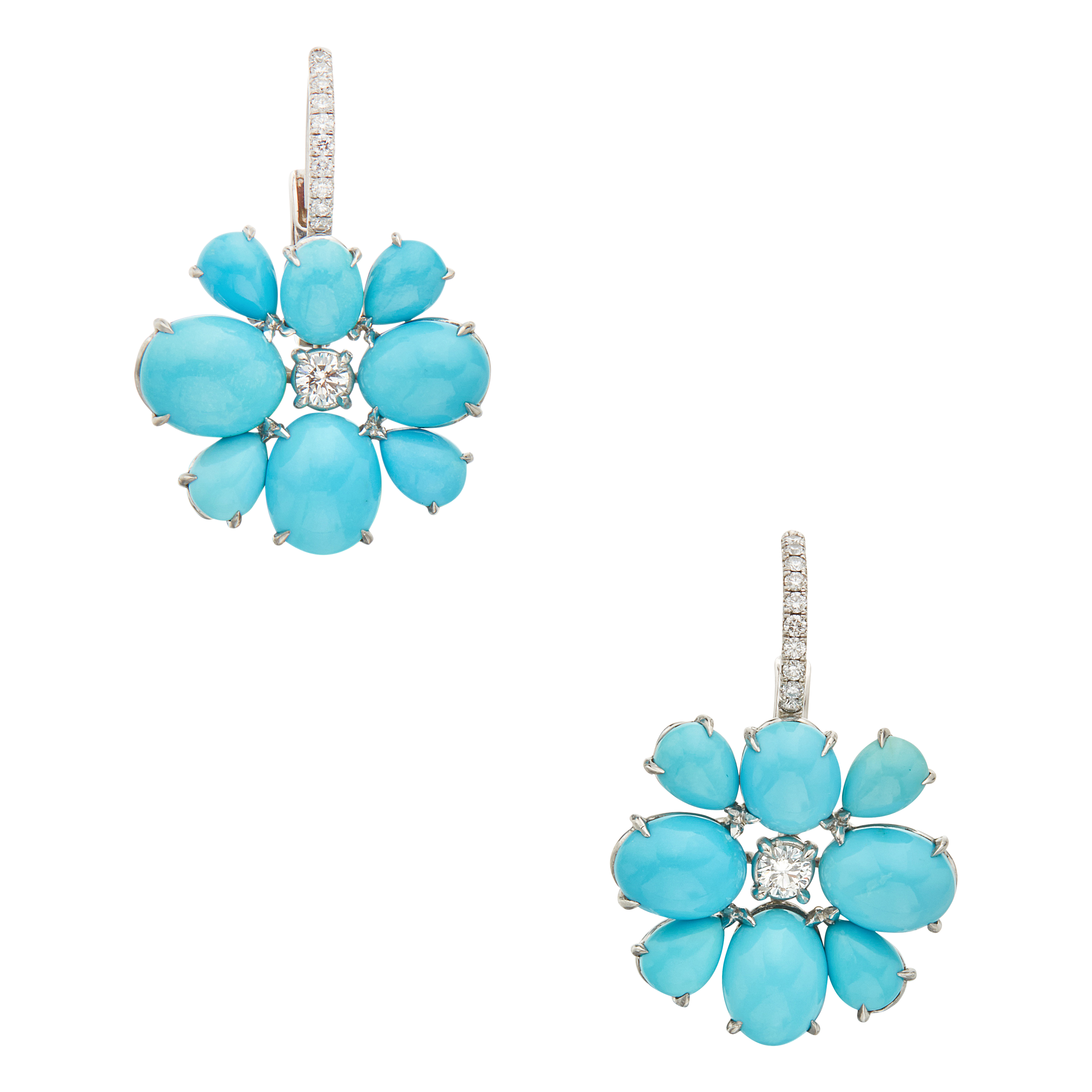 Of floral design, set with oval-shaped turquoise and 22 round diamonds.