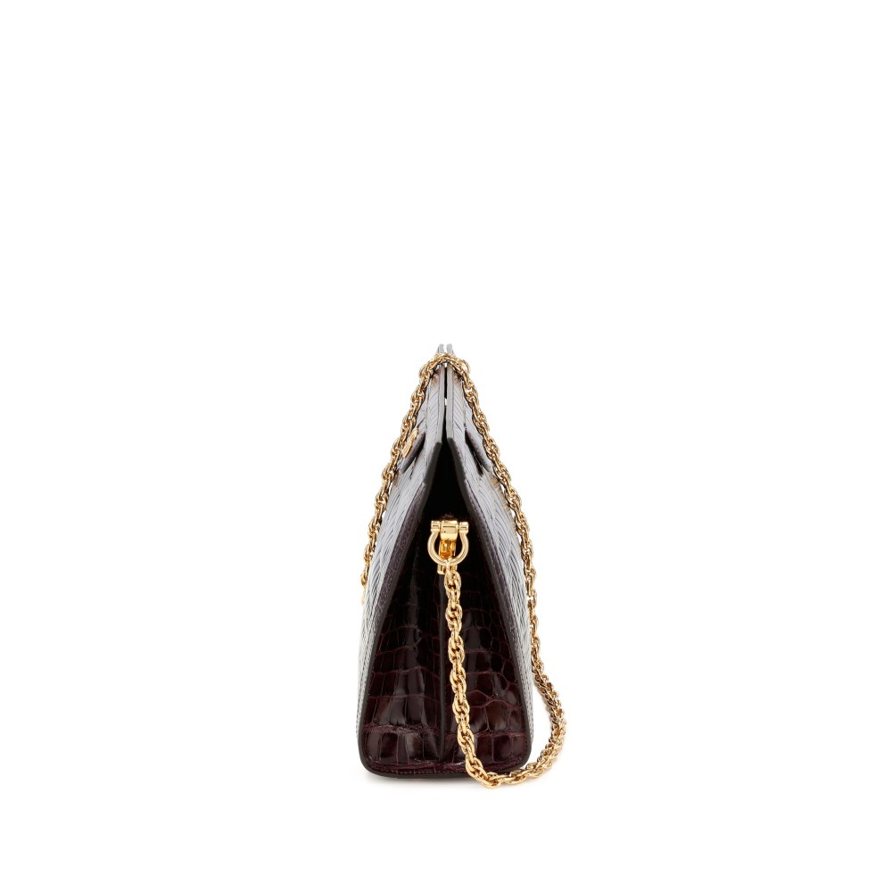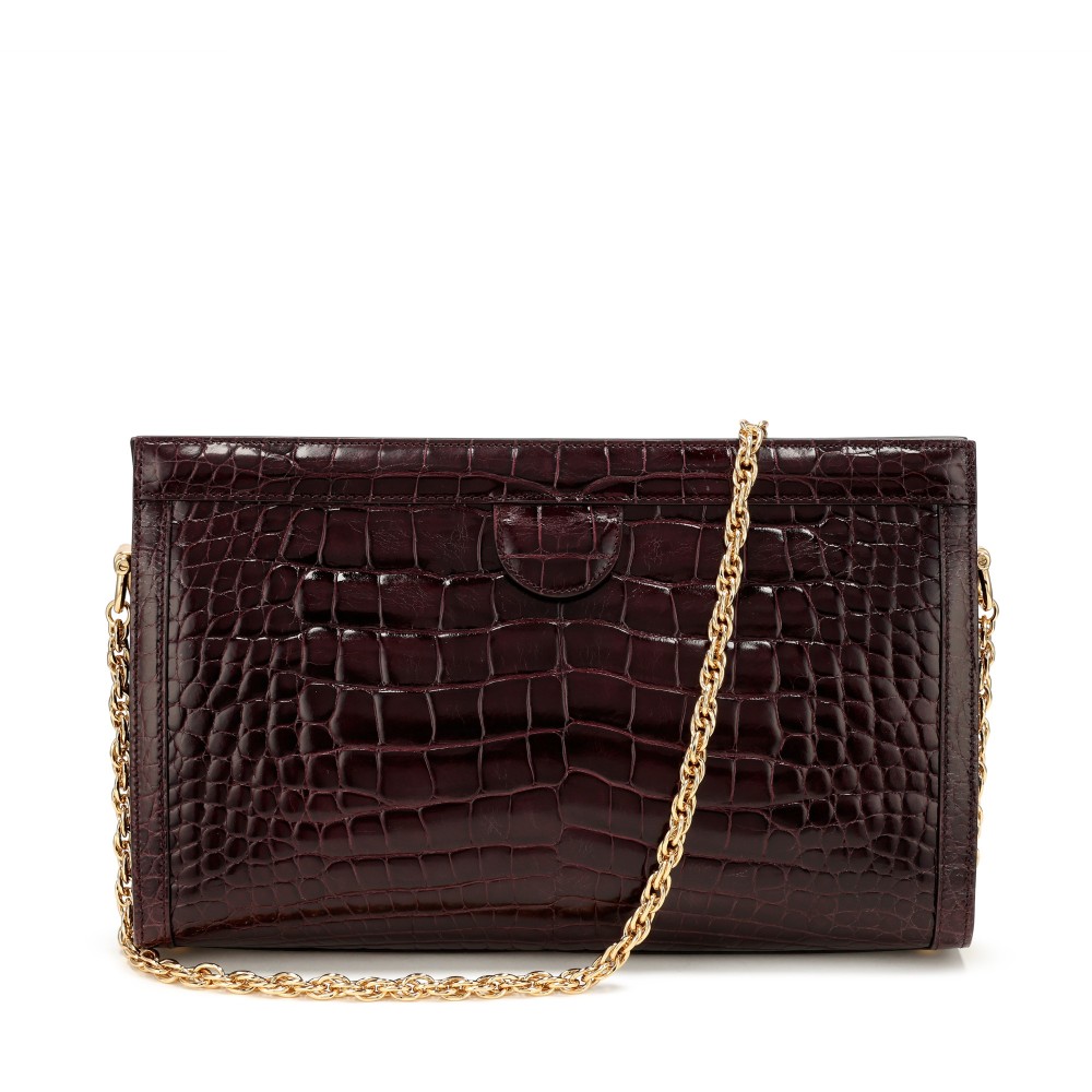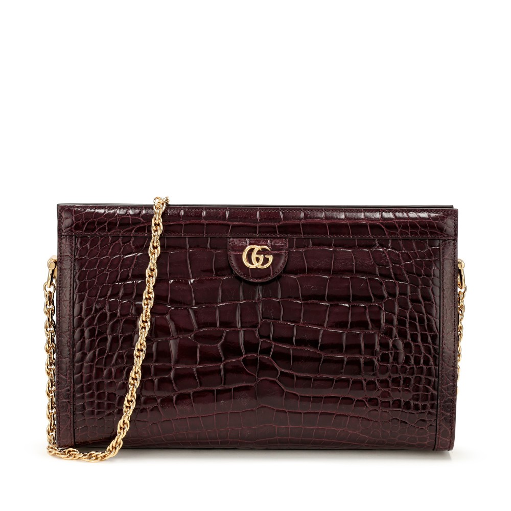 Gucci Plum Crocodile Medium Ophidia Chain Shoulder Bag Gold Hardware