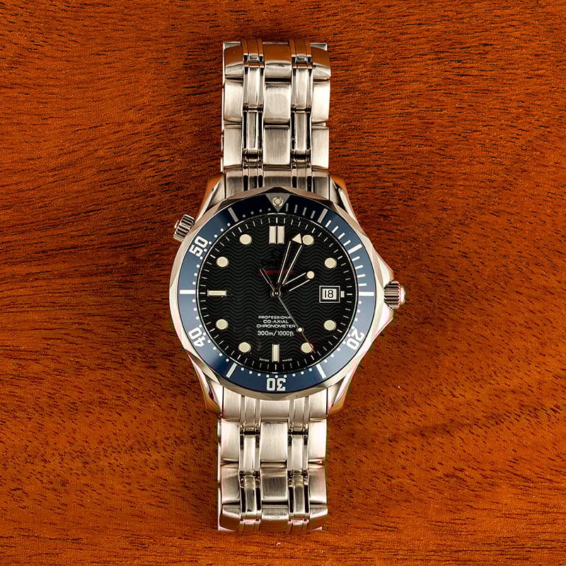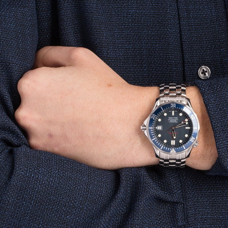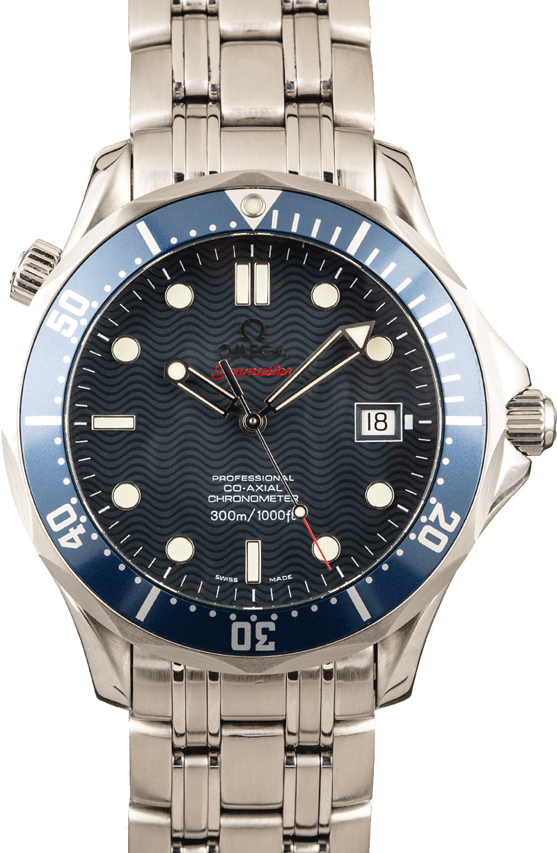 Invest in a ruggedly handsome blue dial Omega Seamaster today. The ref. 168.1630 is a stainless steel edition of the famed Seamaster professional that includes a blue bezel and a matching blue wave dial. The case houses a calibre 2500 movement with automatic winding and promises water-resistance up to 300 meters/1,000 feet. At 41mm in diameter, this pre-owned Omega is just large enough to make an impression without weighing down the wrist. It’s also ideal for both professional use and leisurewear. Make it yours today!