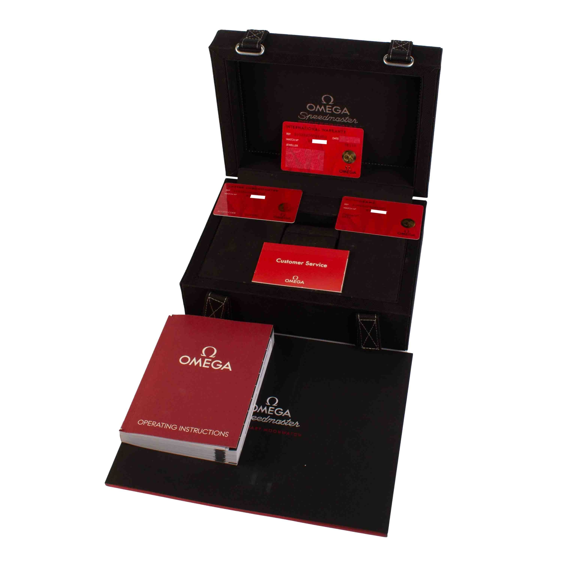 Pre-owned Omega Speedmaster ref 310.30.42.50.01.002 is powered by the calibre 3861 movement, an upgraded version of the calibre 1861 that once powered the iconic “Moon Watch” for five decades. The innovative movement came to market in 2019 and offers the wearer such luxuries as a 50-hour power reserve, a free-sprung balance with silicon balance spring, resistance to magnetic fields up to 15,000 gauss, and the coveted distinction of a Master Chronometer. Its design set also includes the iconic black step dial adorned with an applied Omega logo, an aluminum bezel top ring, a domed and scratch-resistant sapphire crystal, a newer-style case with twisted lugs, and a silky multi-link bracelet.