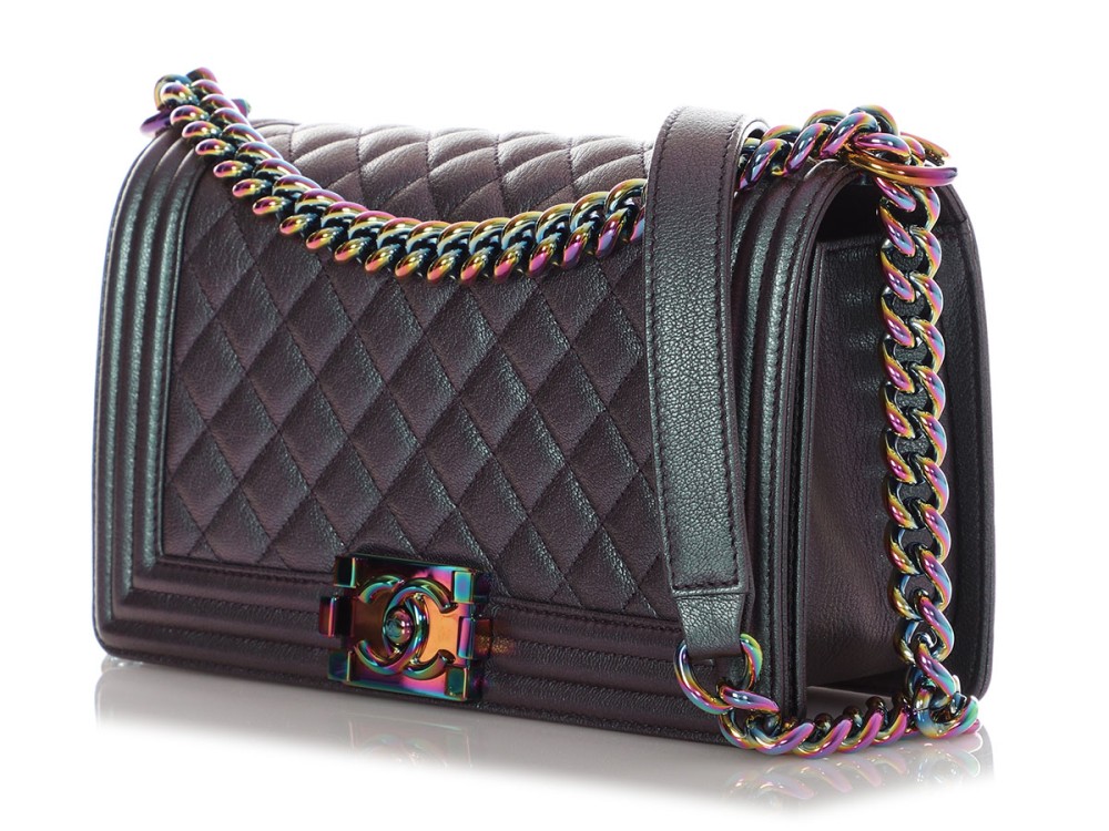 Chanel Purple Iridescent Quilted Goatskin Old Medium Boy Bag Rainbow Ruthenium Hardware, 2015