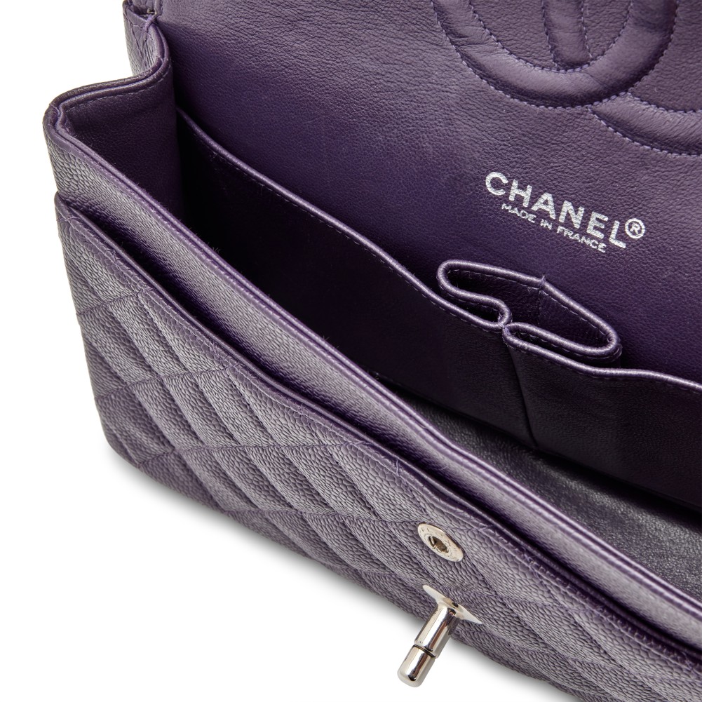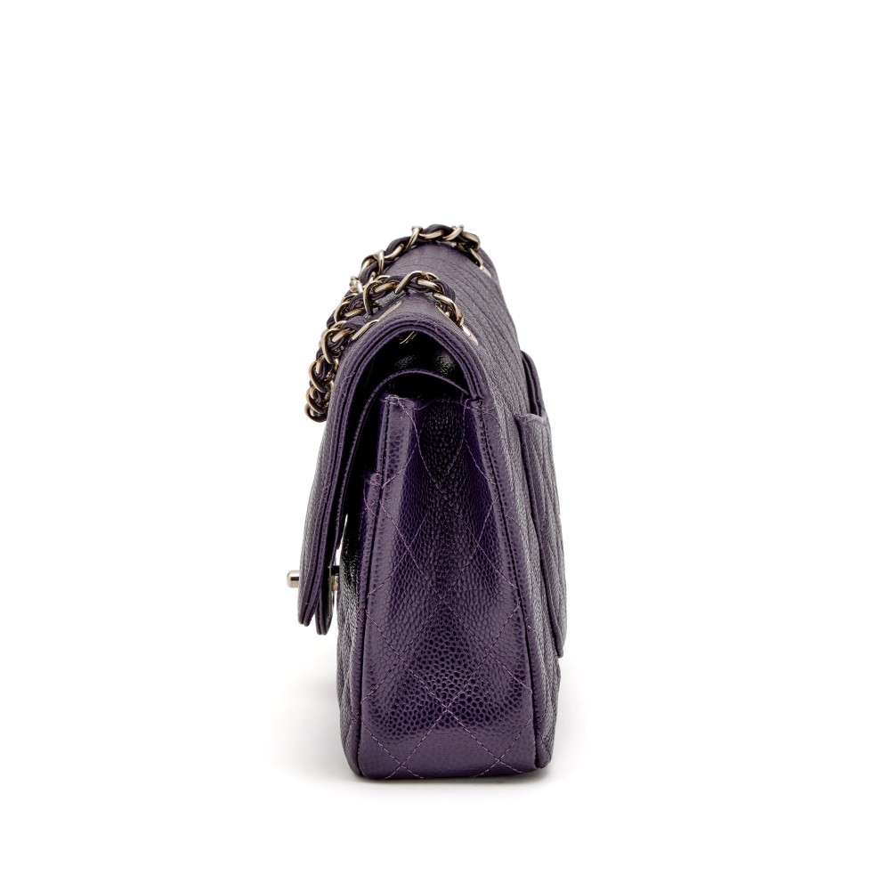 Chanel Purple Quilted Caviar Classic Medium Double Flap Bag Silver Hardware, 2000-2002