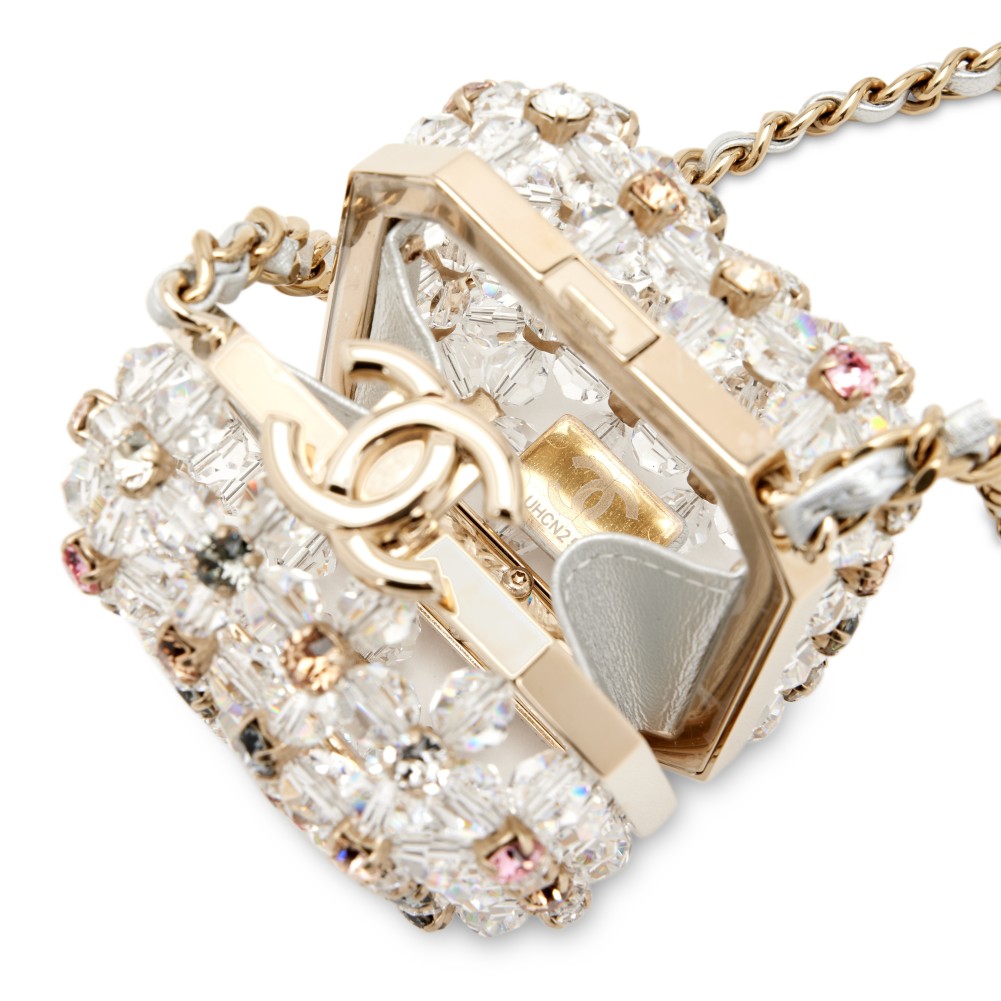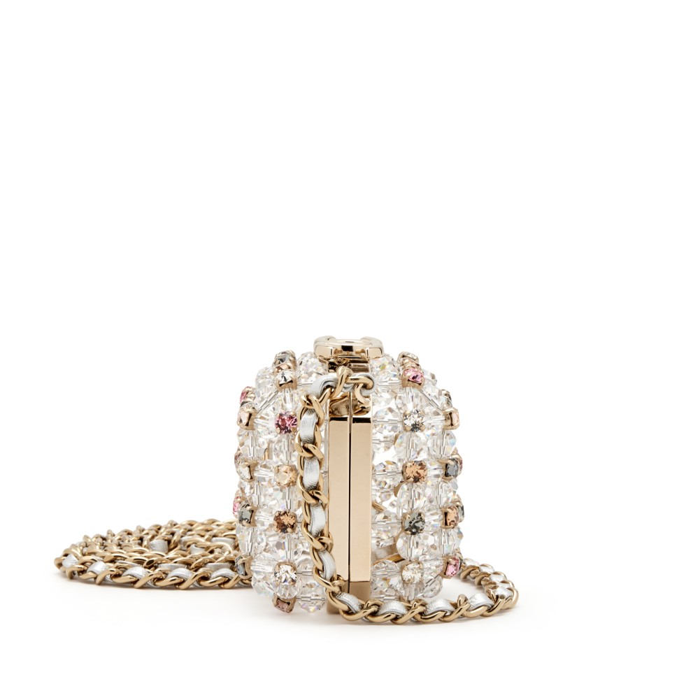 Chanel Rainbow Strass, Clear Crystal Embellished Micro Mini CC Evening Bag Gold Hardware, 2023
