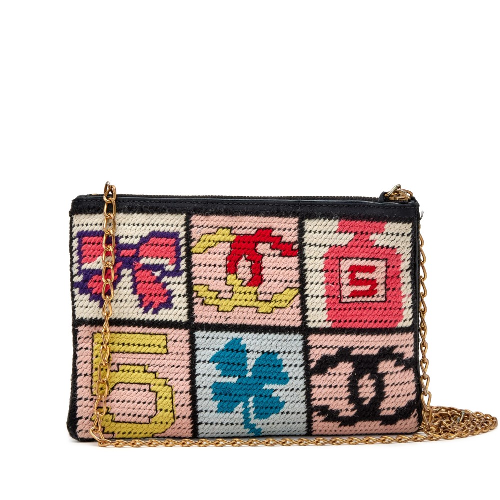 Chanel Rainbow Wool Precious Symbols Needle Point Shoulder Bag Gold Hardware, 2003-2004