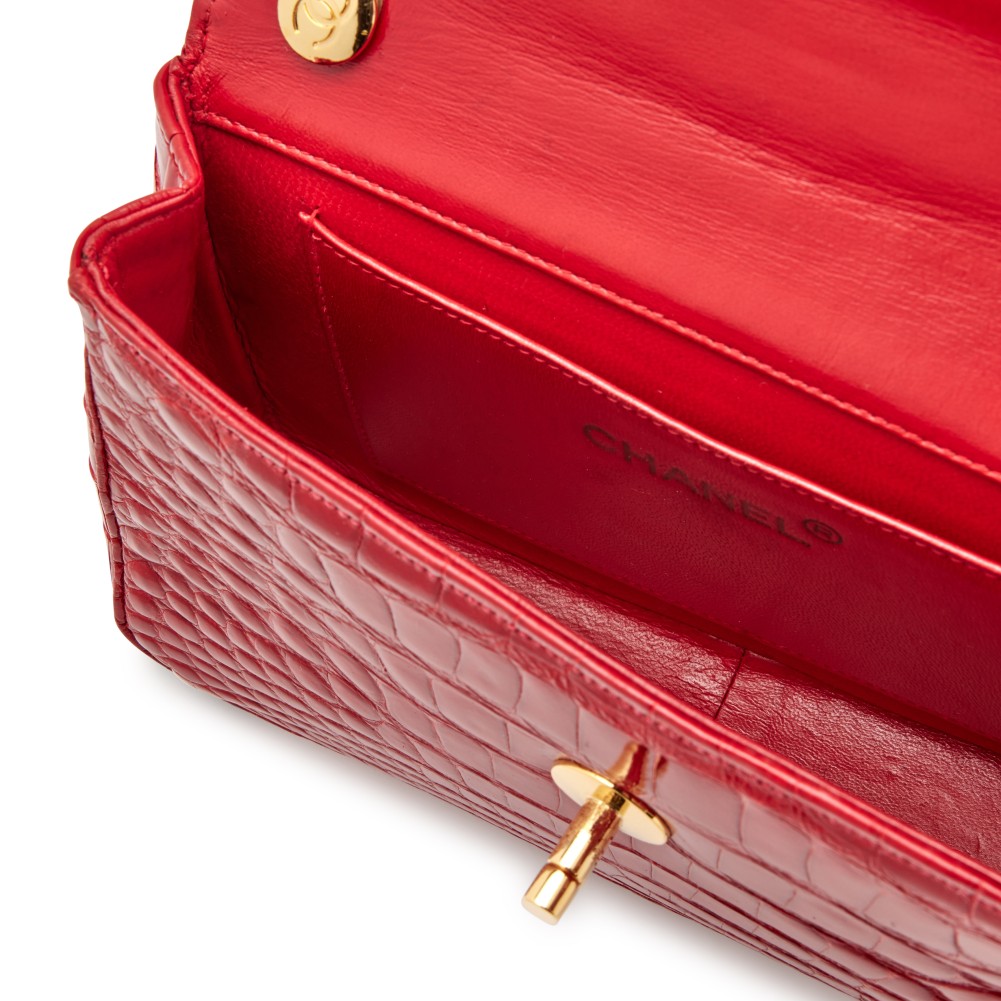 Chanel Red Alligator Mini Half Flap Gold Hardware, 1986-1988
