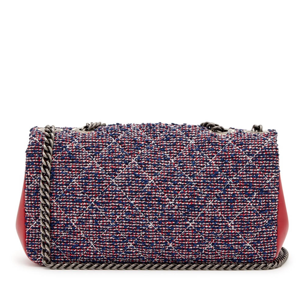 Chanel Red, Blue, and White Multicolor Tweed Single Flap Bag Ruthenium Hardware, 2016-2017