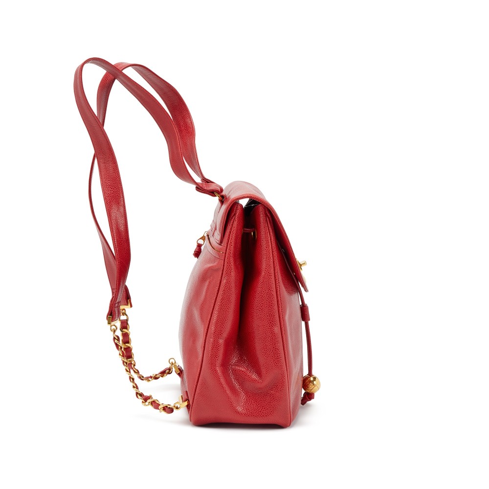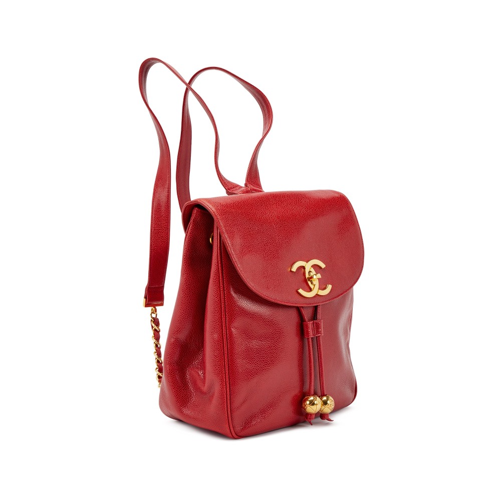 Chanel Red Caviar CC Backpack Gold Hardware, 1991-1994