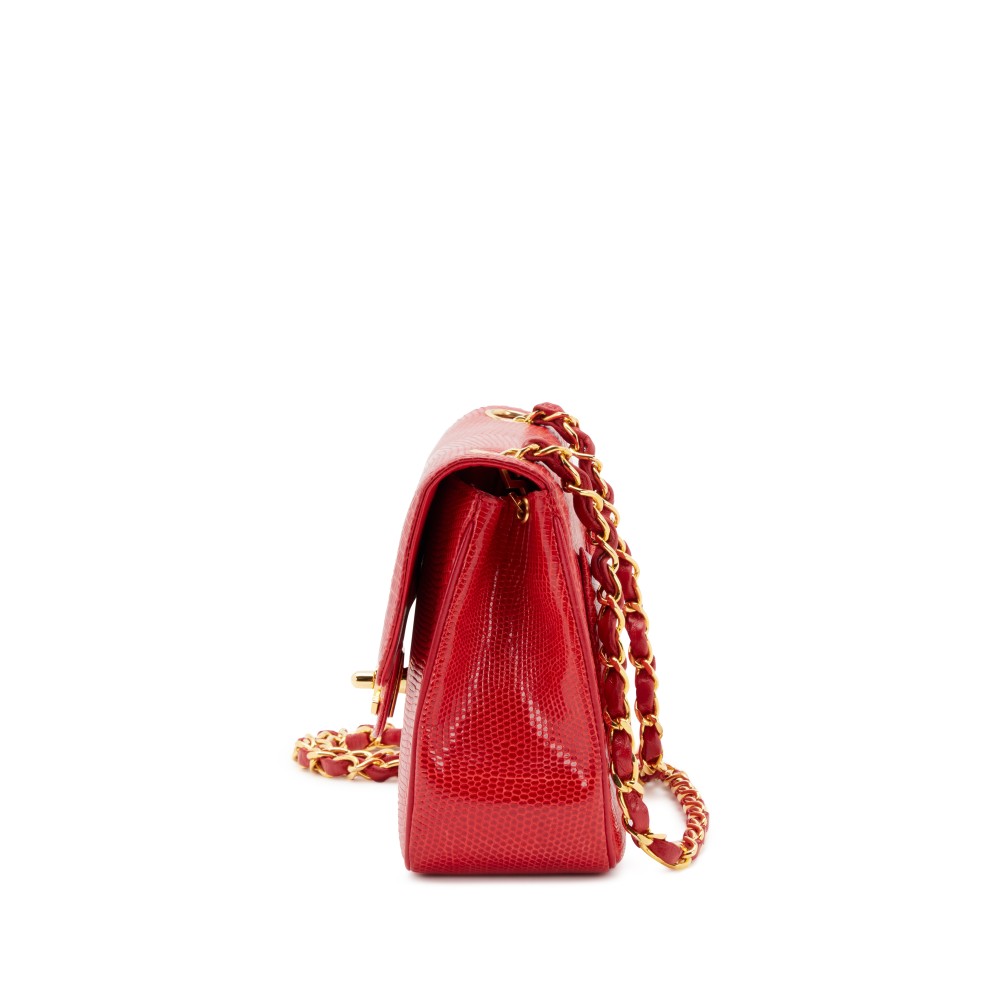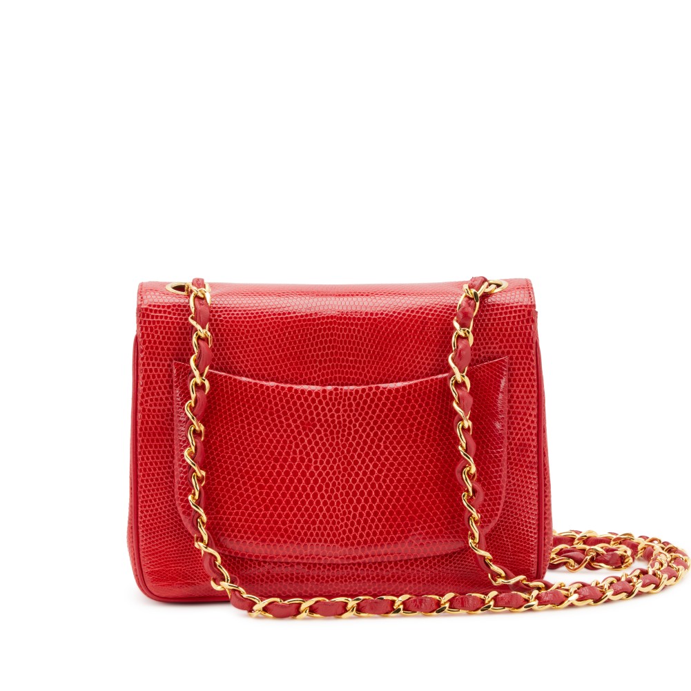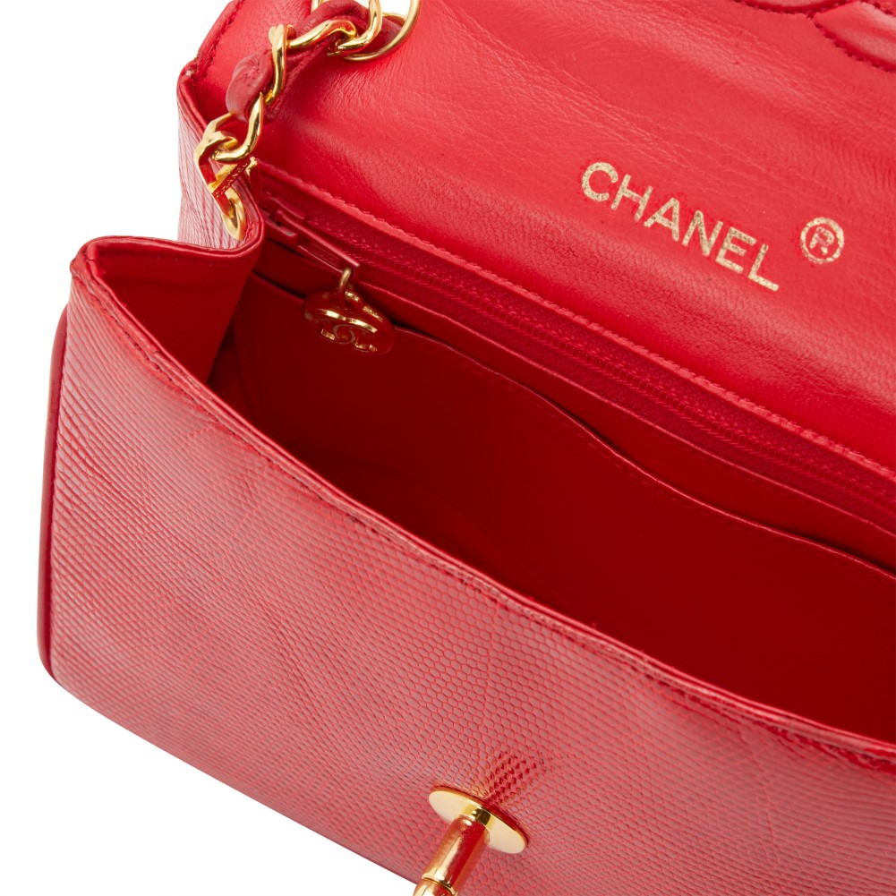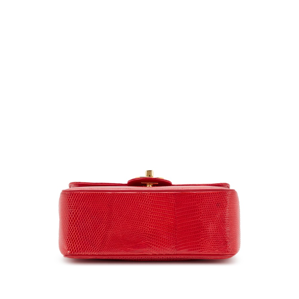 Chanel Red Lizard Mini Square Classic Flap Gold Hardware, 1986-1988