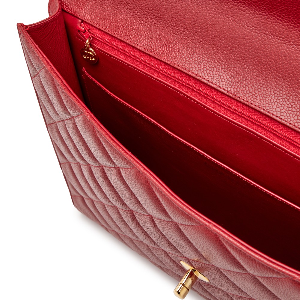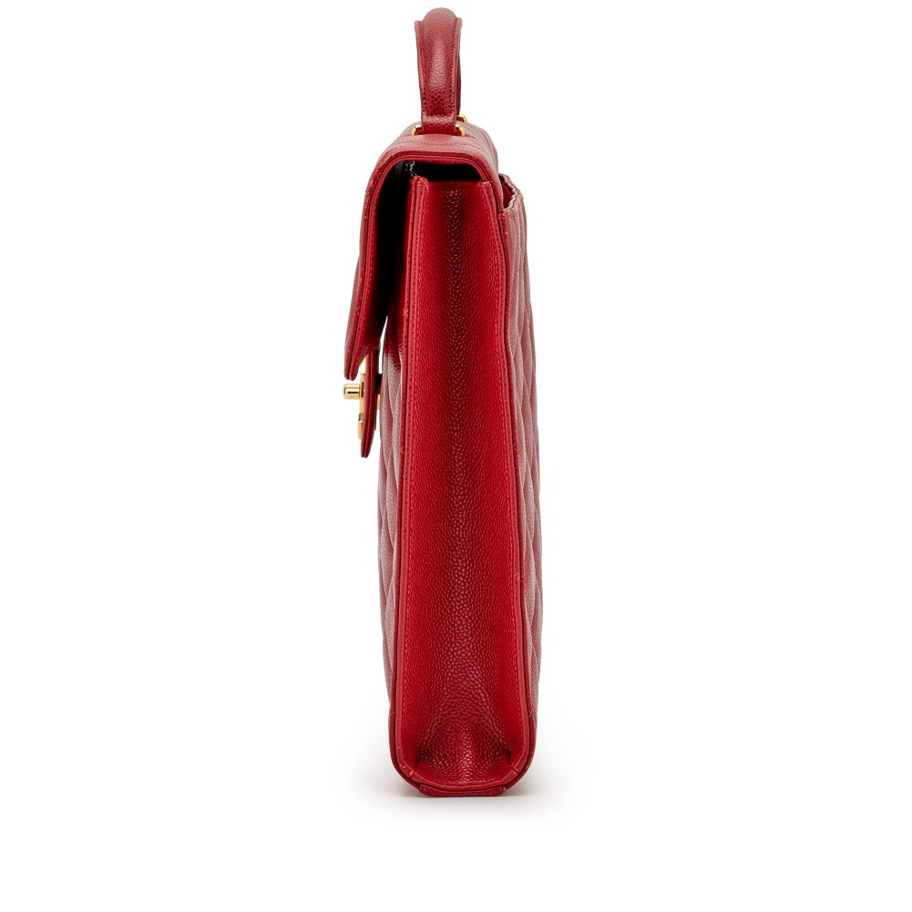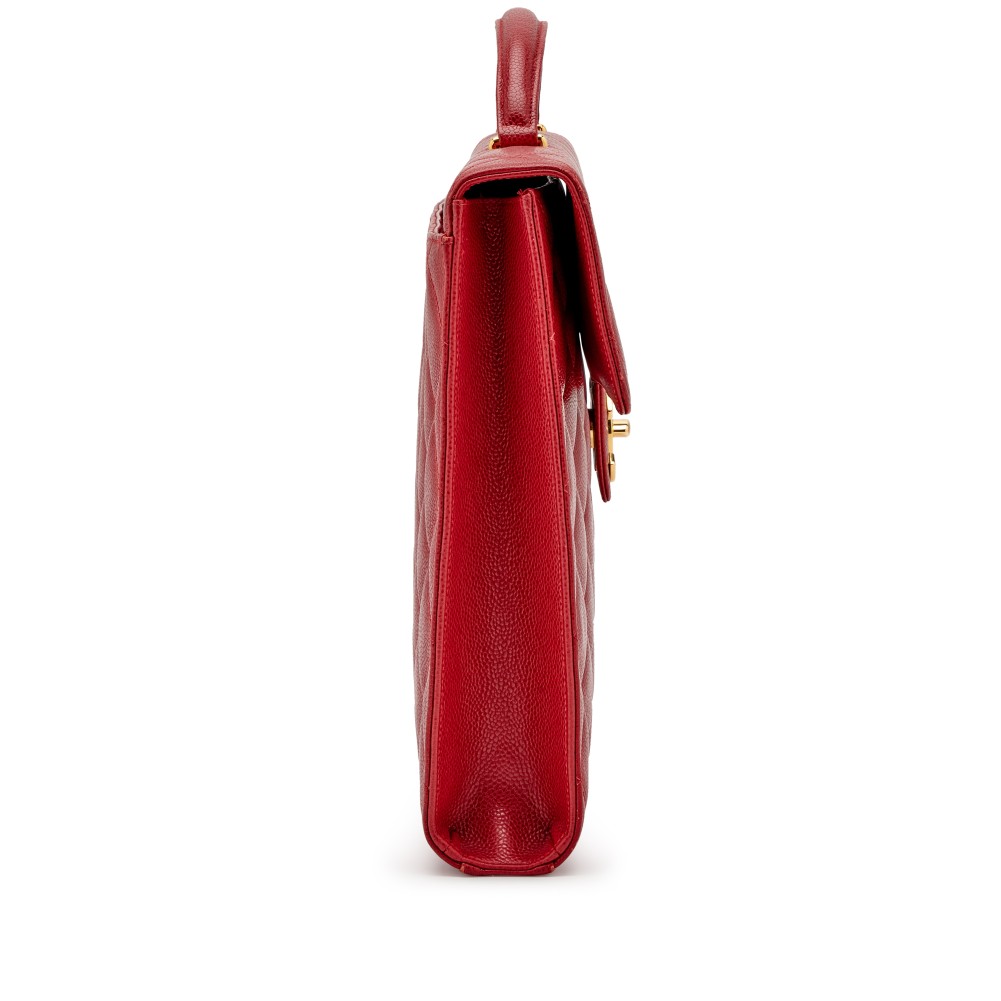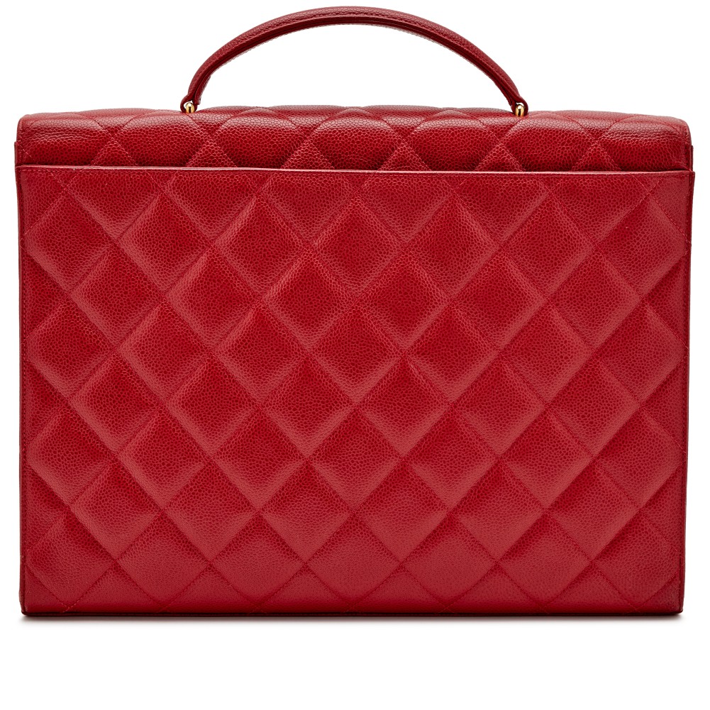 Chanel Red Quilted Caviar CC Briefcase Gold Hardware, 1996-1997