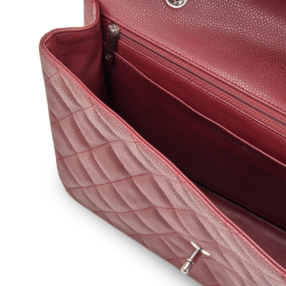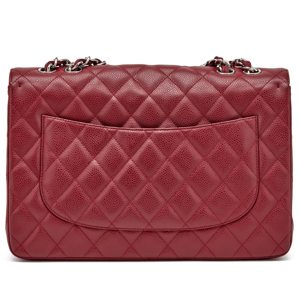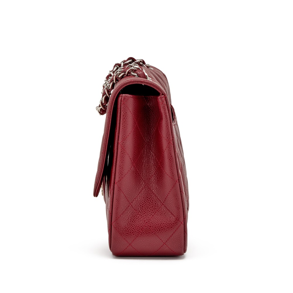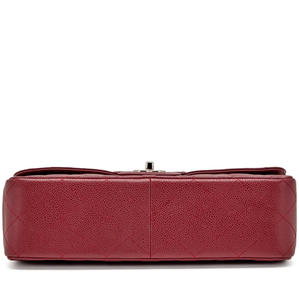 Chanel Red Quilted Caviar Jumbo Classic Single Flap Silver Hardware, 2009-2010