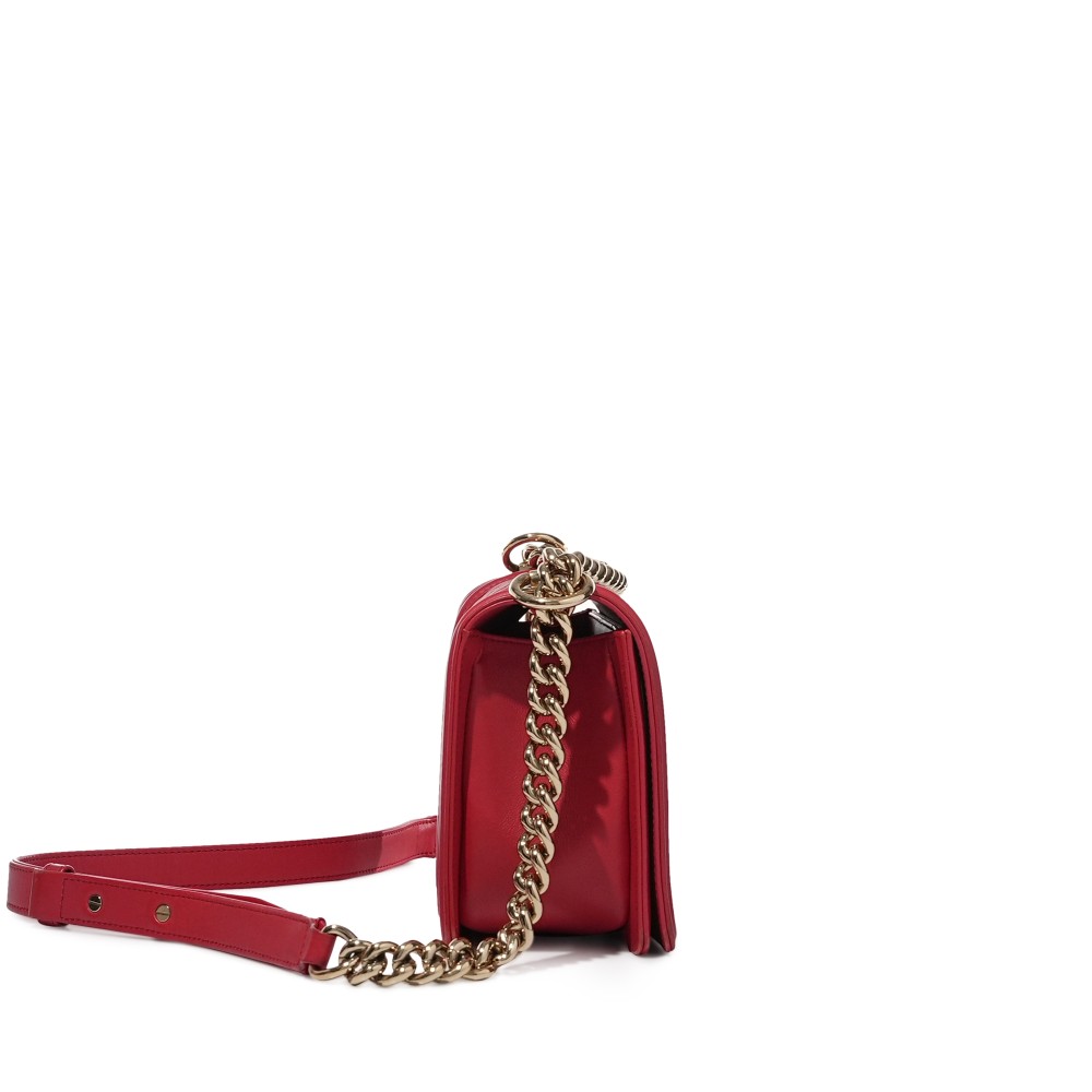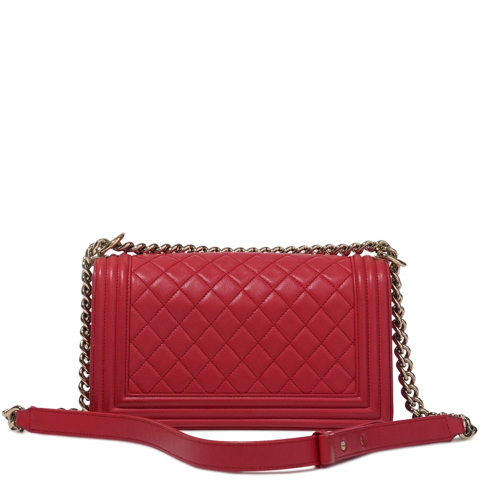 Chanel Red Quilted Lambskin Medium Boy Bag Gold Hardware, 2019