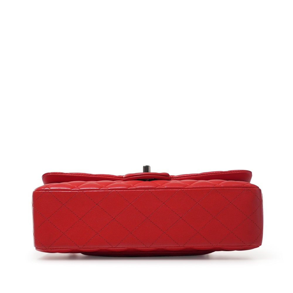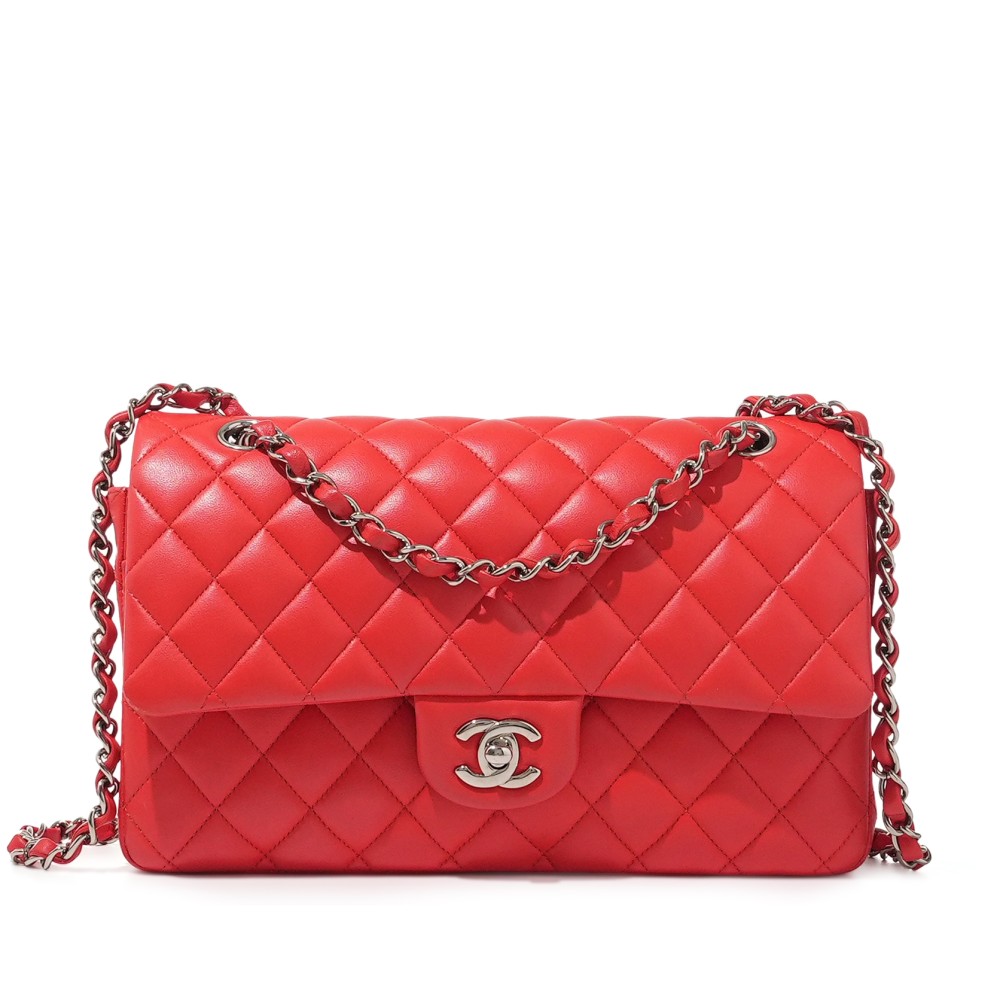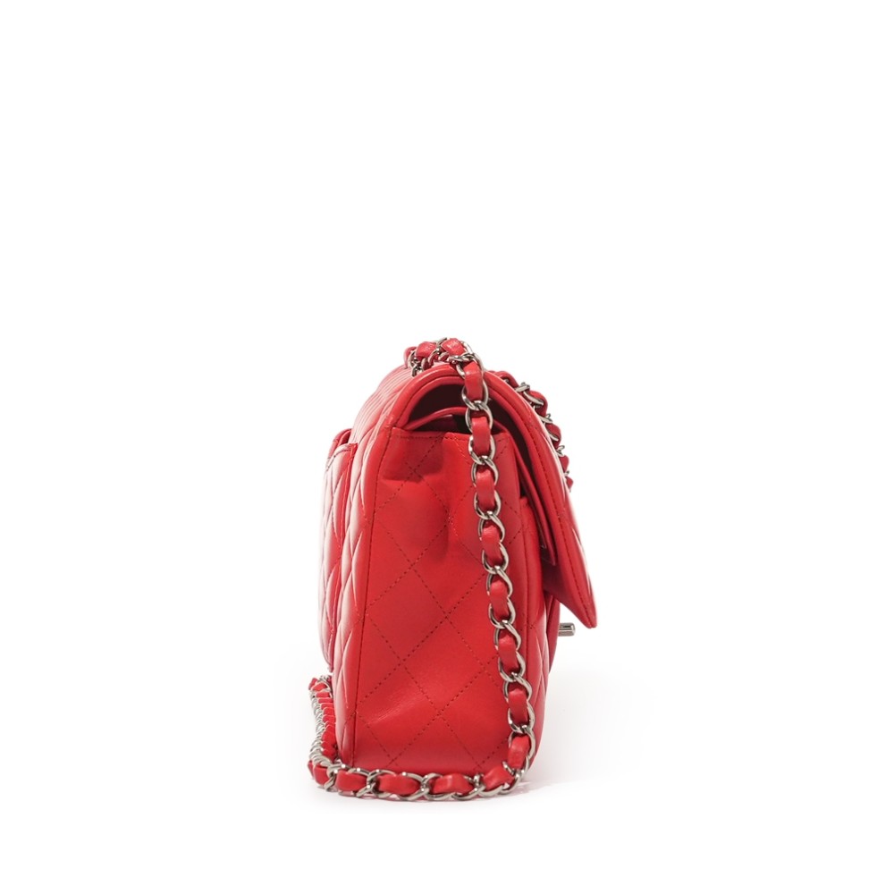 Chanel Red Quilted Lambskin Medium Classic Double Flap Bag Silver Hardware, 2019