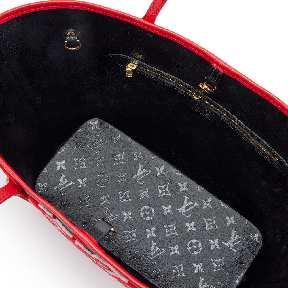 Louis Vuitton Red, White, and Black Tufted Monogram Canvas LVxUF Neverfull MM Gold Hardware, 2020