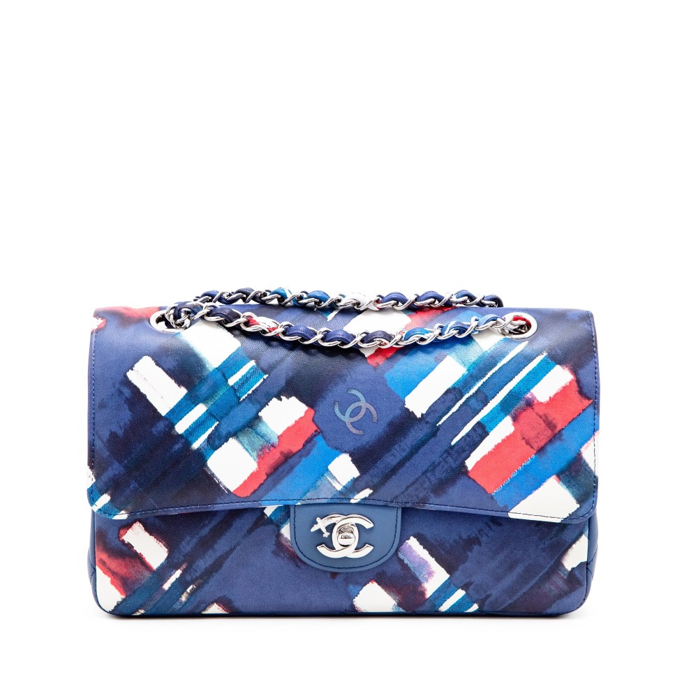 Chanel Red, White, and Blue Quilted and Printed Lambskin Medium Double Flap Silver Hardware, 2016
