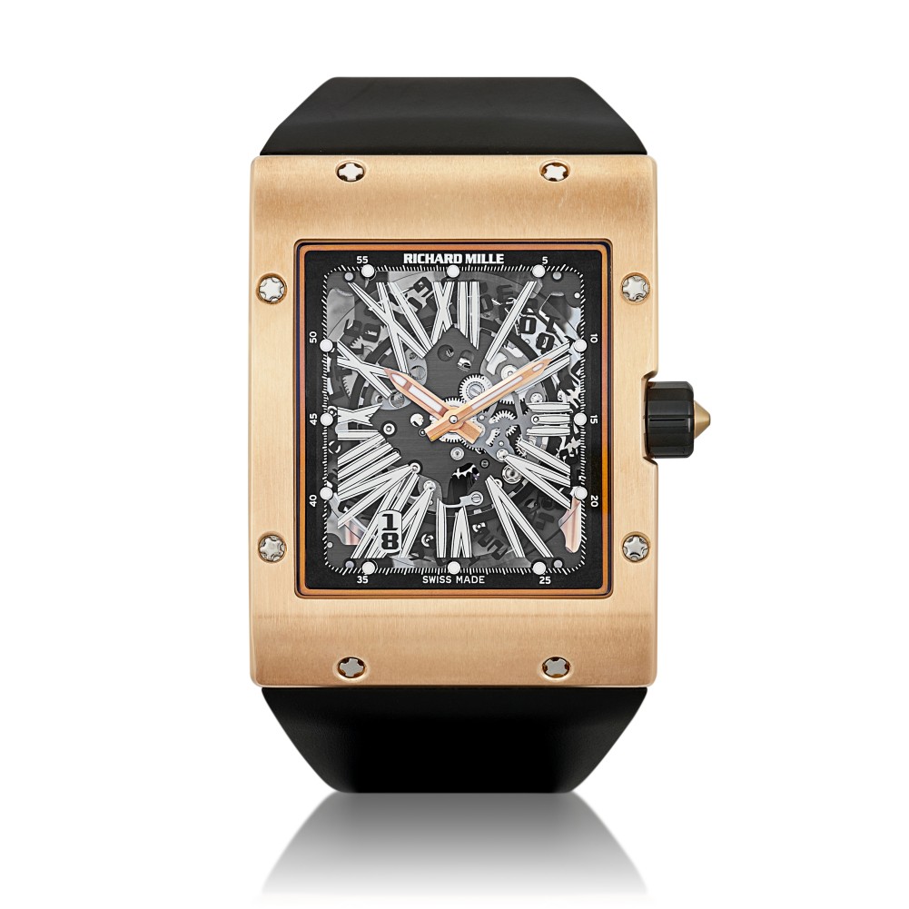 Richard Mille faced the challenge of maintaining the strength and unique character of his models while expanding his design options. The RM016 was a game-changer in 2007 as Richard Mille ventured into two uncharted territories. Firstly, the rectangular shape of the watch was a departure from the brand’s signature tonneau-shaped cases. Secondly, the ultra-thin movement marked the founding pillars of a more sophisticated and refined aesthetic, which can be seen in current references such as the RM067-01 and RM067-02. Available in excellent condition, the watch not only has a great wrist presence, it also established the foundation for further avant-garde case designs in Richard Mille.
