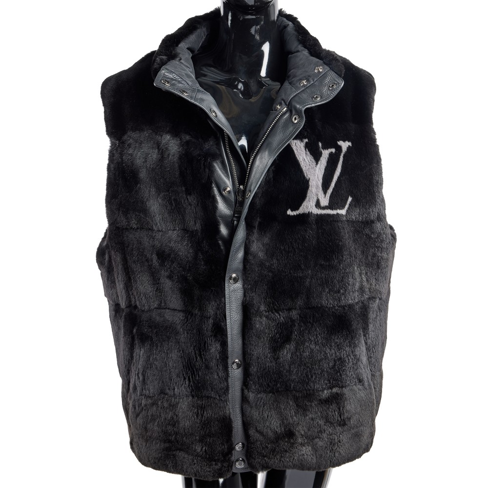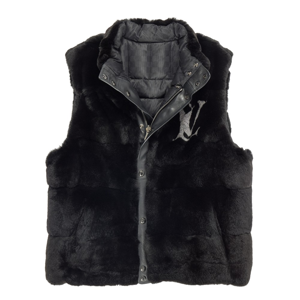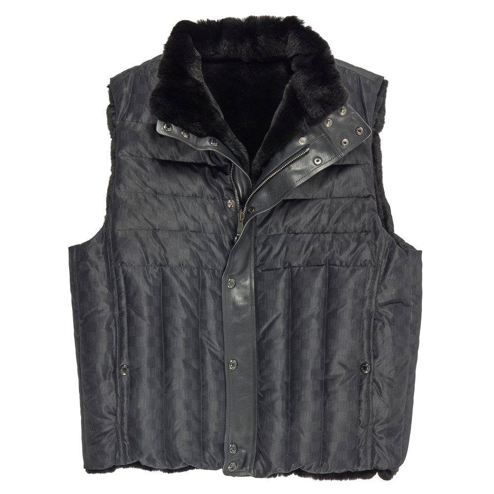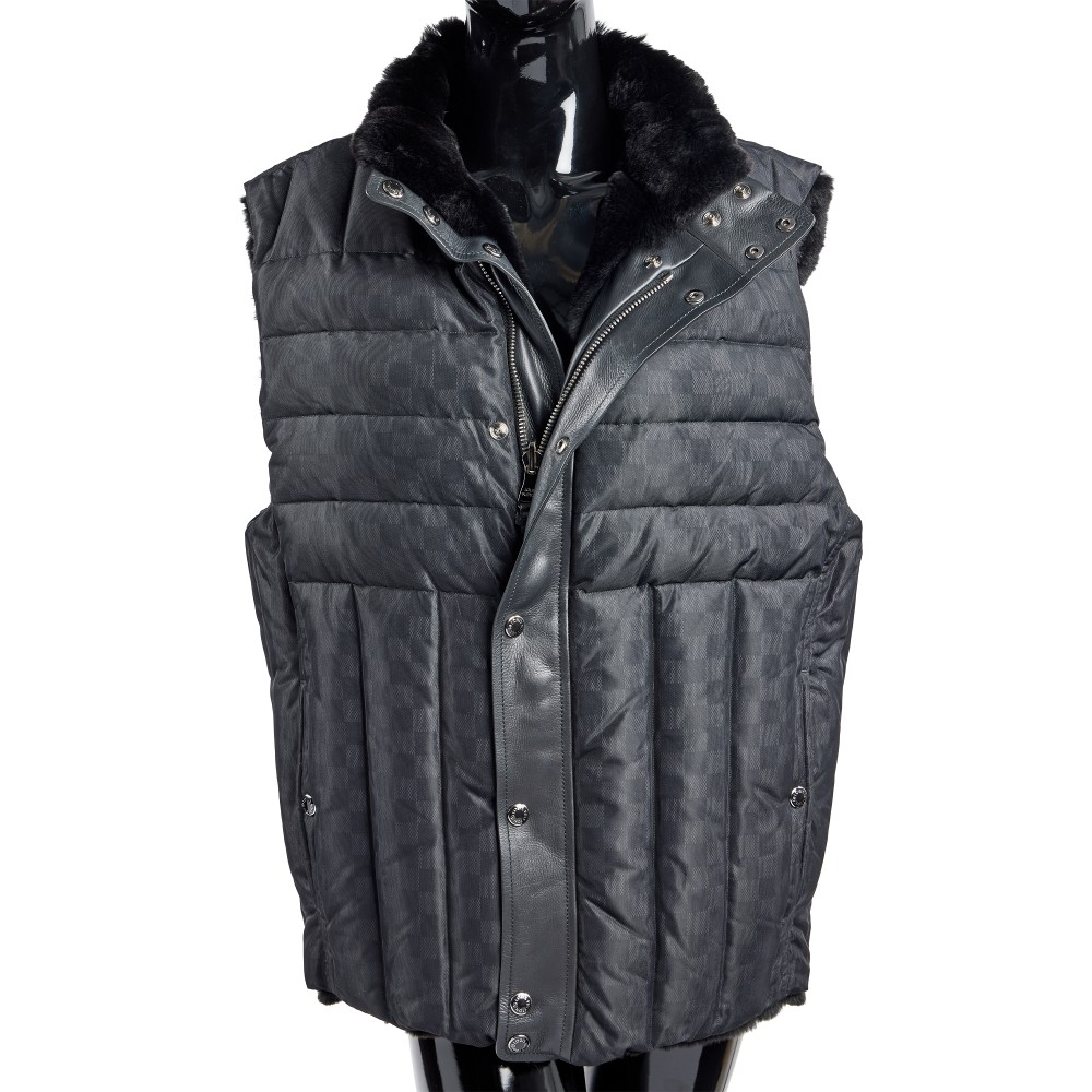 Louis Vuitton Reversible Black Rabbit Fur and Black Nylon Damier Veritable Plume D’oie Vest