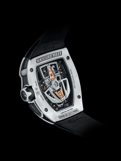 With its 1,070-horsepower hybrid powertrain, the Speedtail covers 112 metres per second when travelling at its top speed of 250mph/402kph, making it the fastest McLaren road car to date. McLaren’s relentless pursuit of aerodynamic efficiency provided the starting point for the design of the RM 40-01 Automatic Tourbillon McLaren Speedtail.