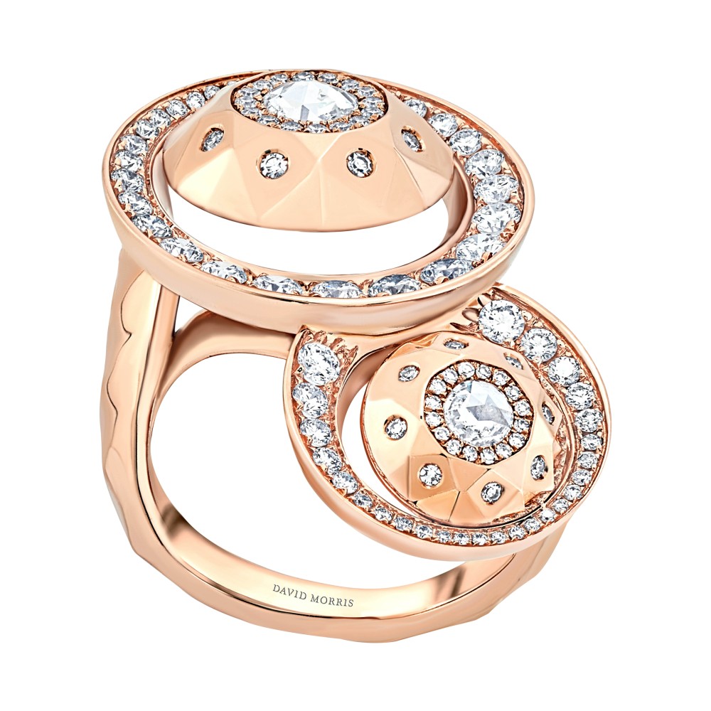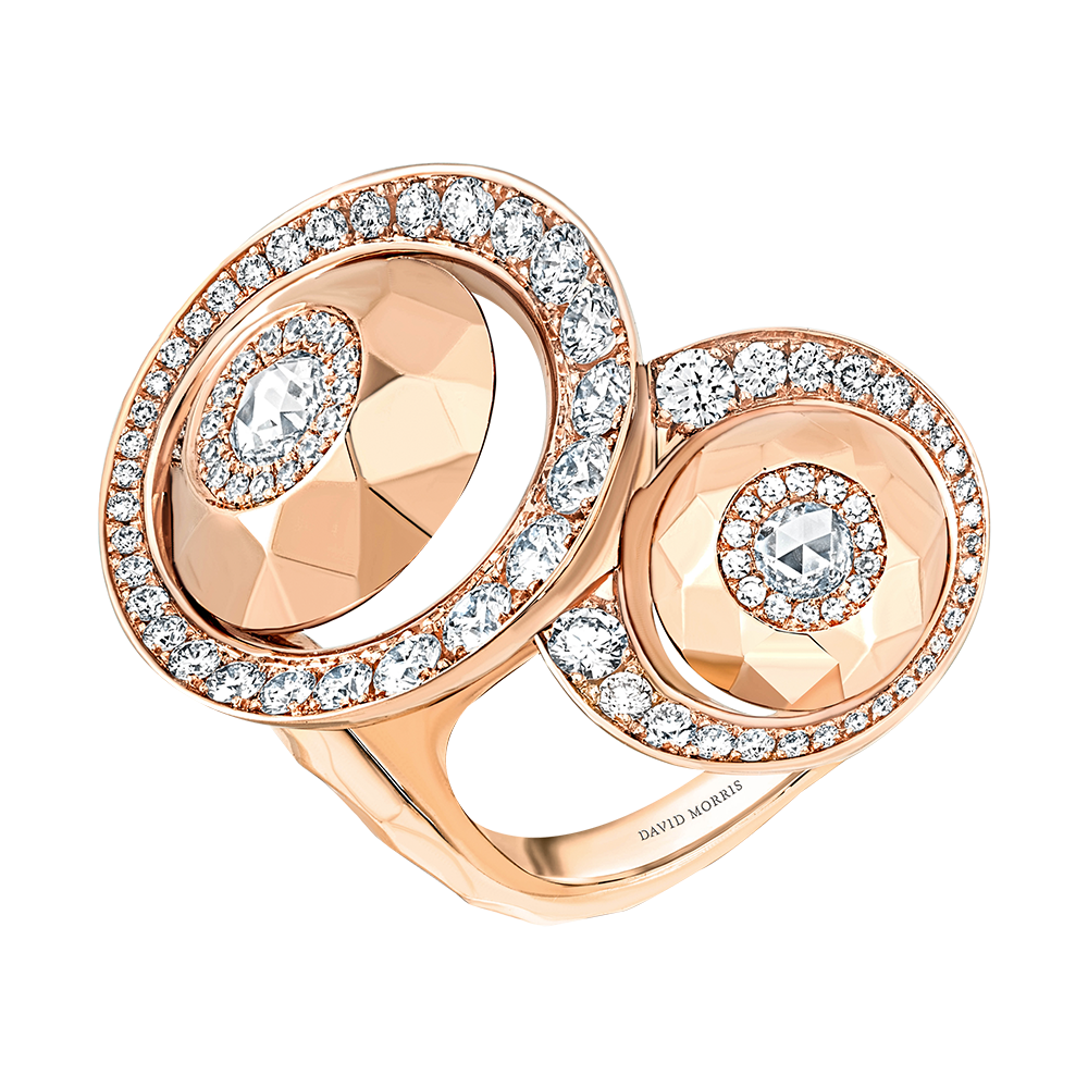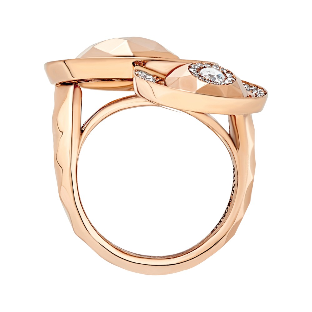 Featuring 2 discs, set with round rose-cut diamonds in the center, faceted high-polish gold and round brilliant cut diamonds.