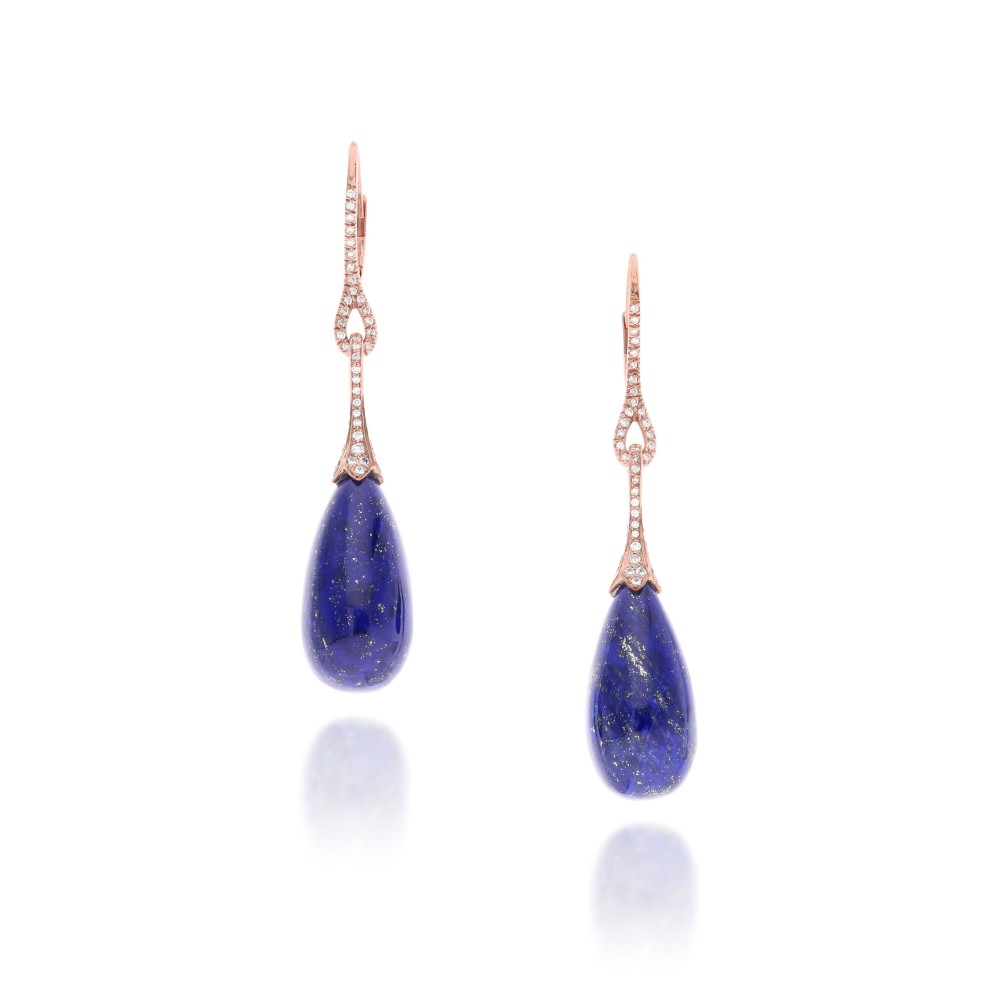 Composed of lapis lazuli drops and round brilliant-cut diamonds.