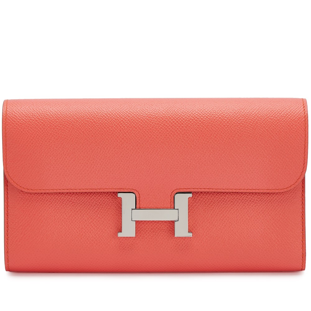 Herm?s Rose Jaipur Epsom Constance Long Wallet Palladium Hardware, 2014