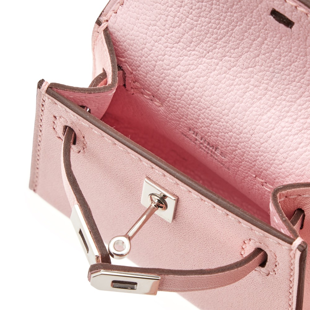 Herm?s Rose Sakura Tadelakt Mini Kelly Twilly Bag Charm Palladium Hardware, 2022