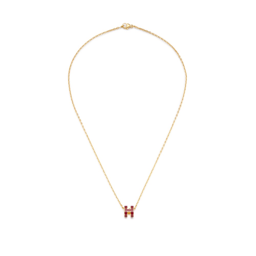 Herm?s Rouge Rubis Lacquer Mini Pop H Pendant Gold Hardware
