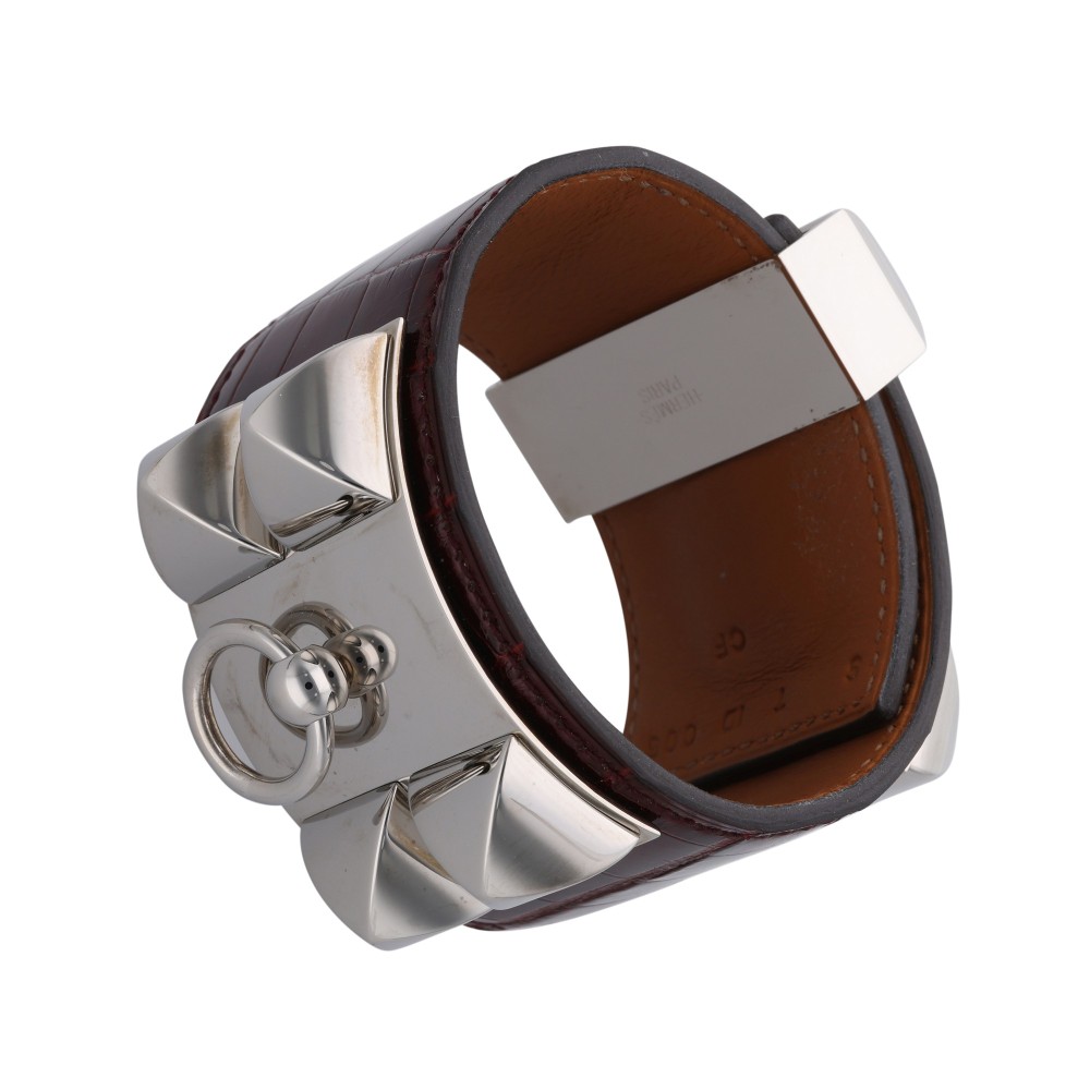 Herm?s Rouge Vif Shiny Alligator Large Collier de Chien Palladium Hardware, 2015