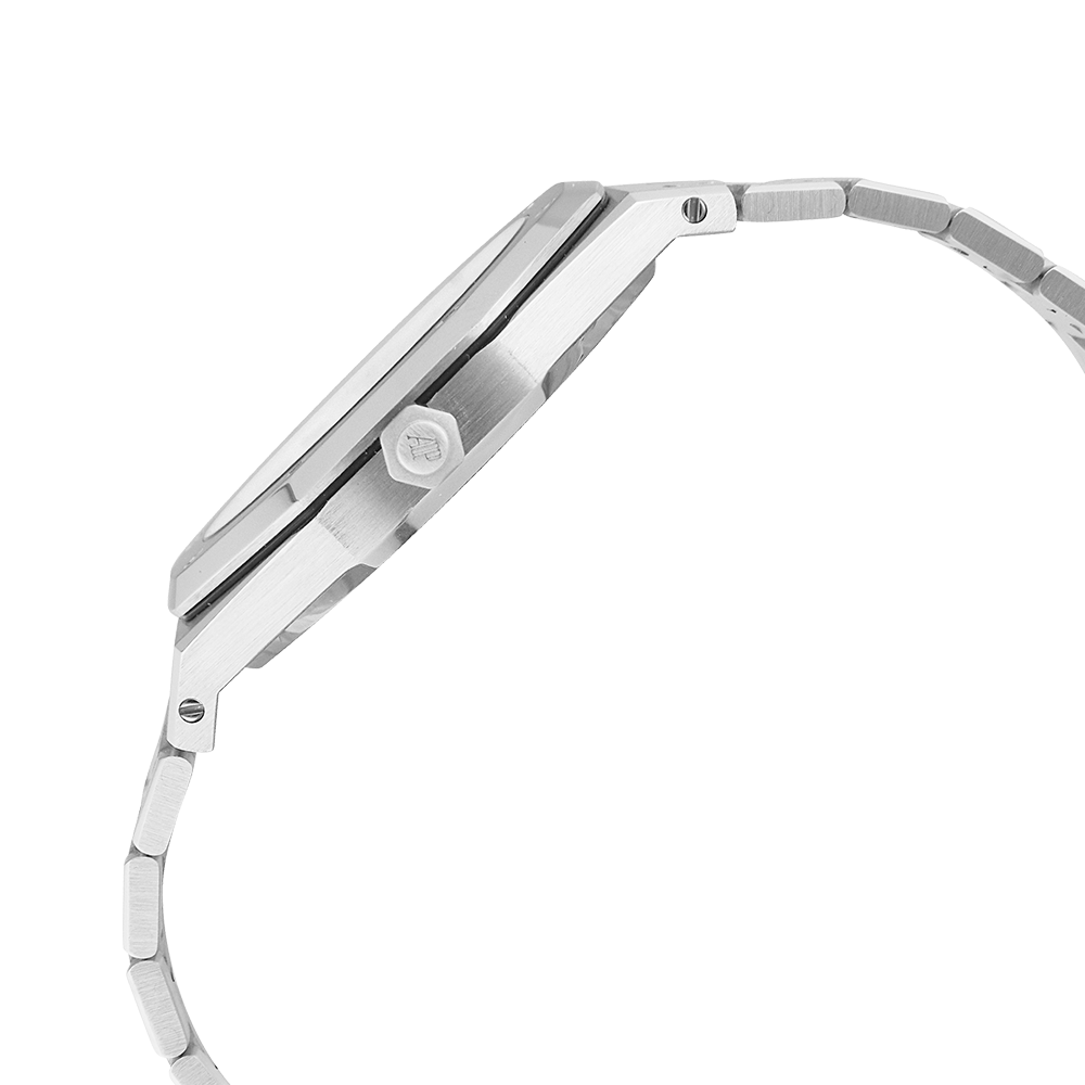 Audemars Piguet Royal Oak with a 39 mm stainless steel case and a sapphire glass, water resistant; inside is the automatic calibre 2121, a white index face with date indication, the bracelet is a steel metal bracelet; accessory: sales box (original).